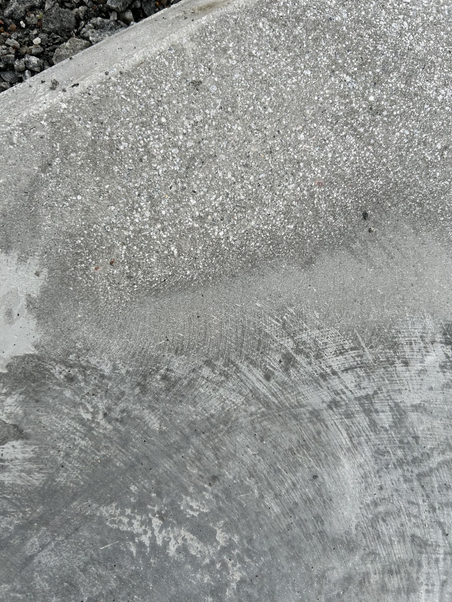 Jag skulle vilja be om en second opinion på gjutningen och efterarbetet på en betongplatta enligt bifogade bilder.