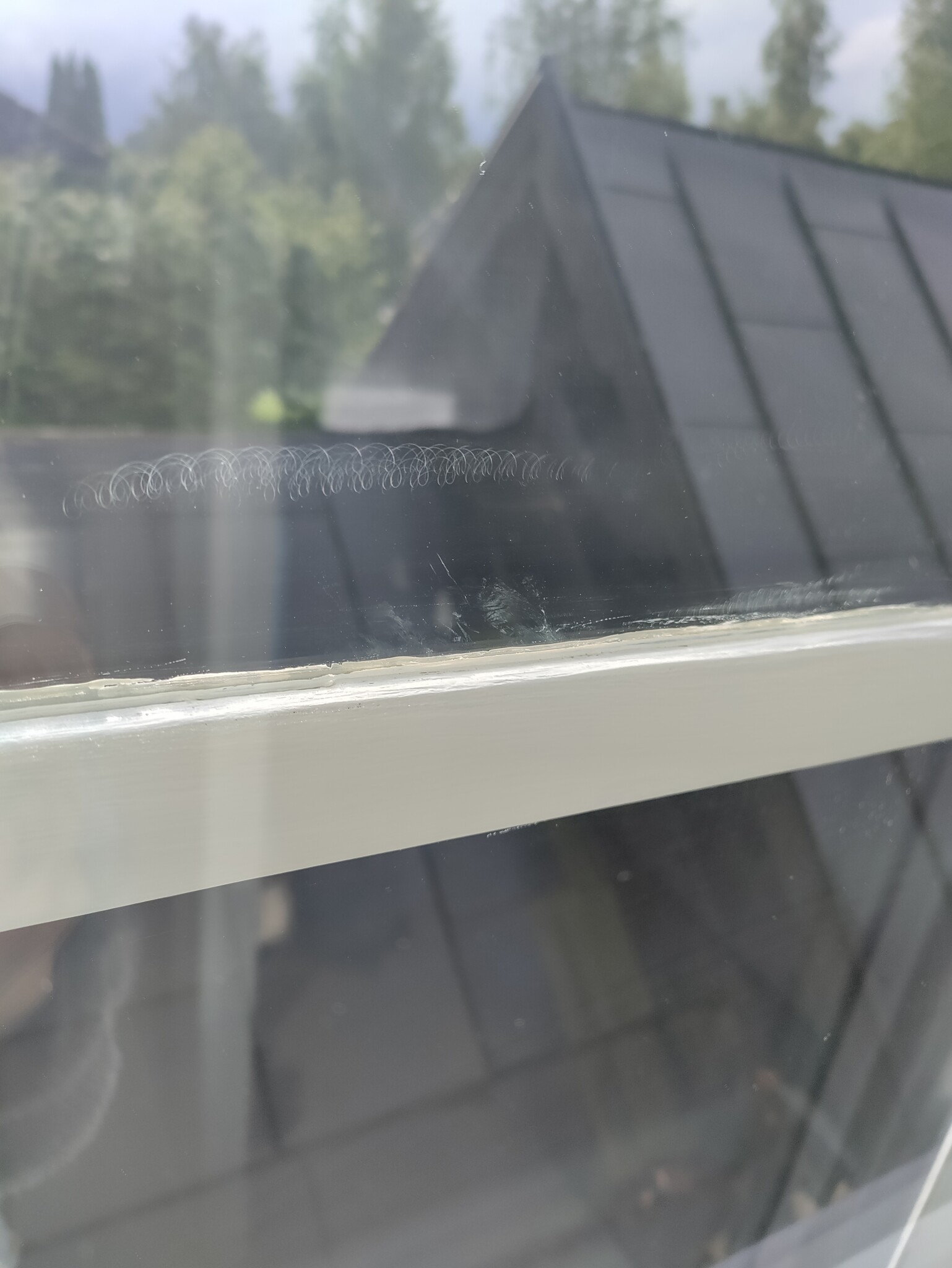 Är dock vanligare att man har raka repor parallellt med spröjsen när nån släpat färgskrapan längs glaset.