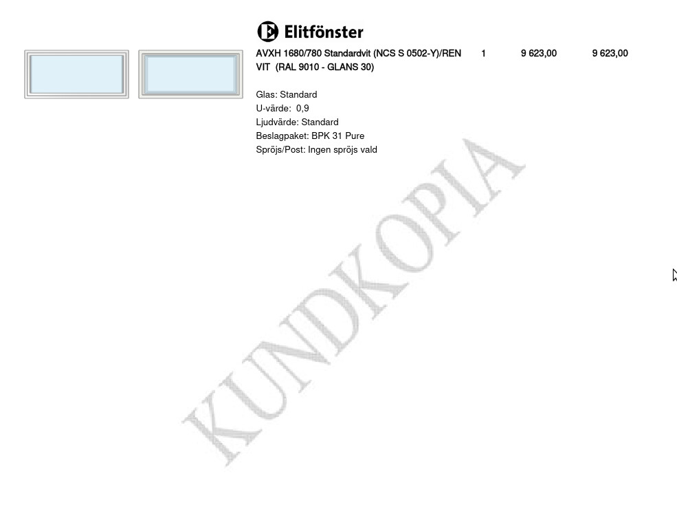 Exempel från 2018. Inte Ahlsell men en byggvaruhandlare som riktar in sig mer mot hantverkare. Det är samma fönster i bägge offerterna. Tror jag nämnde detta då när det begav sig. Min hantverkare skickade helt sonika vidare mailet från bygghandlaren till mig med både den riktiga fakturan och "kundkopian", vilket nog inte är vad handlaren tänker sig. Den översta är alltså ett urklipp ur något som heter Offert, tydligt och klart. Med kundkopia "stämplat" över hela. Notera ordvalet kopia, som implicerar att detta är samma som hantverkaren får. Inte lika fula rabatter som Ahlsell men 30 % är inte kattskit det heller.Alfredo skrev: