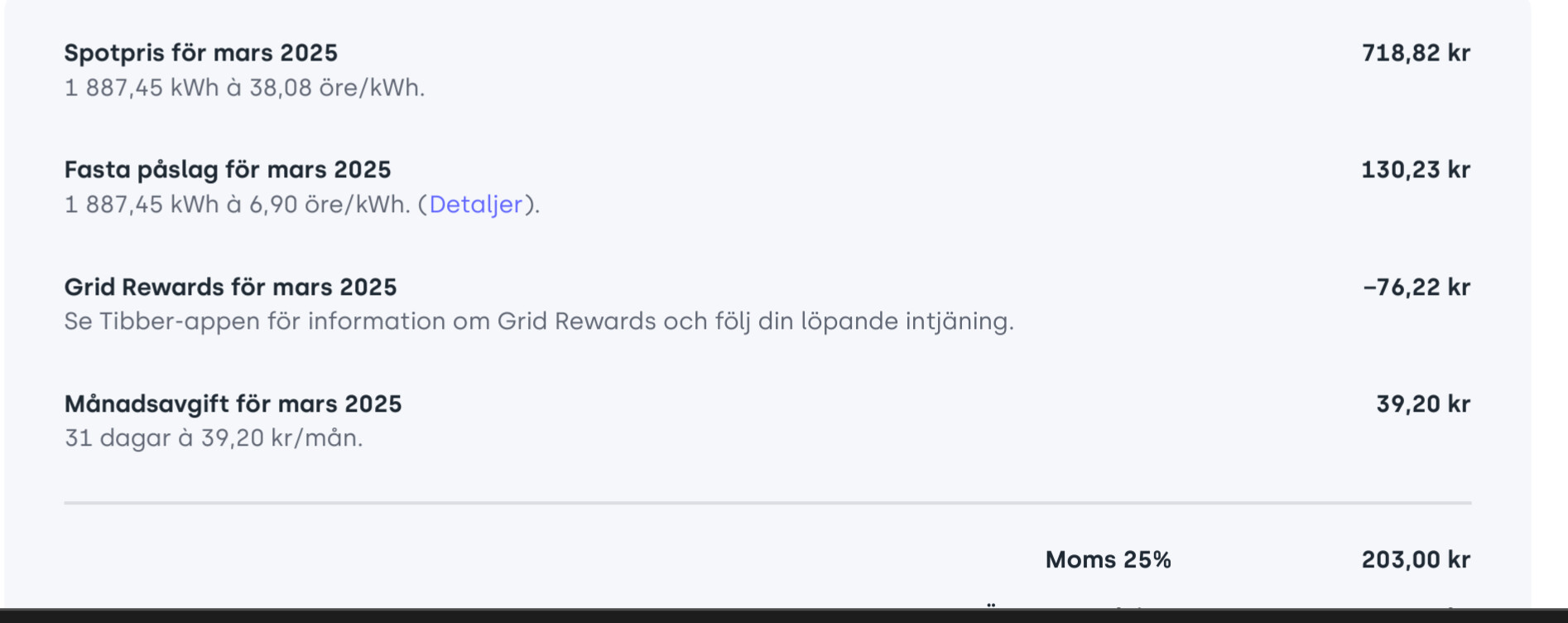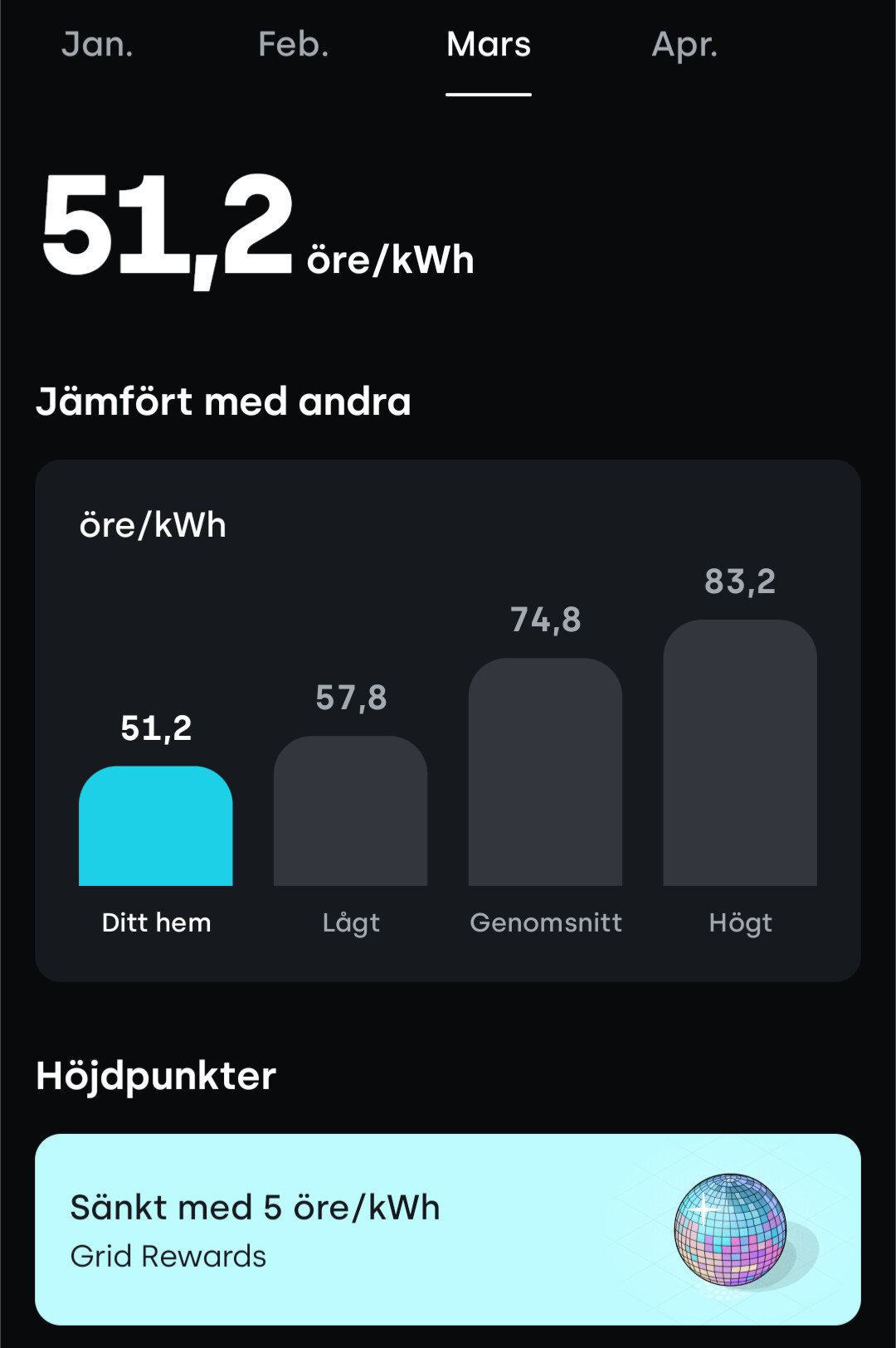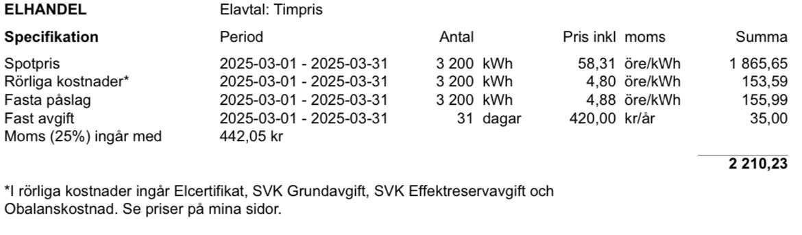 Så trots SE3 och timpris och styrning hamnar du på 67,99 öre per kWh, 0,314 öre under mitt SE4 månadsmedelpris.M mbo2019 skrev: