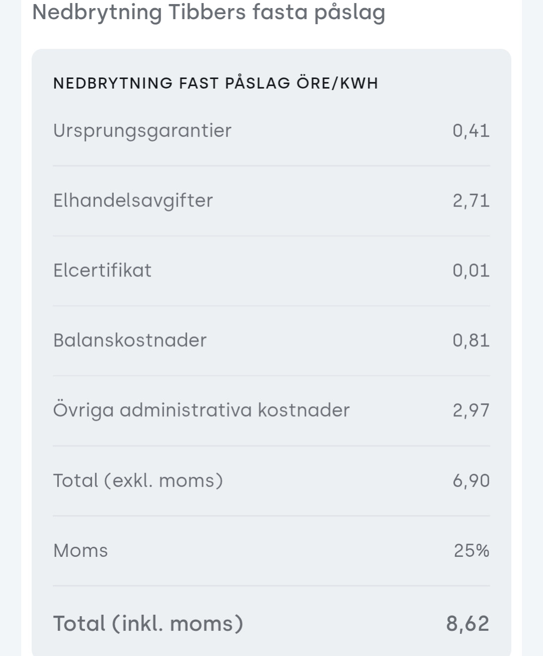 Mina redovisade 70öre inkl moms för SE3 var med elbil borträknad.