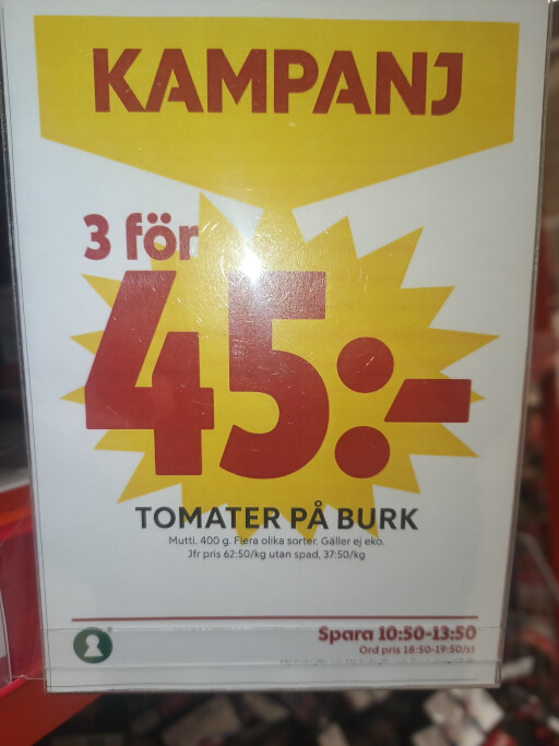 Tre burkar Mutti krossade tomater för kampanjpriset 45 kr...