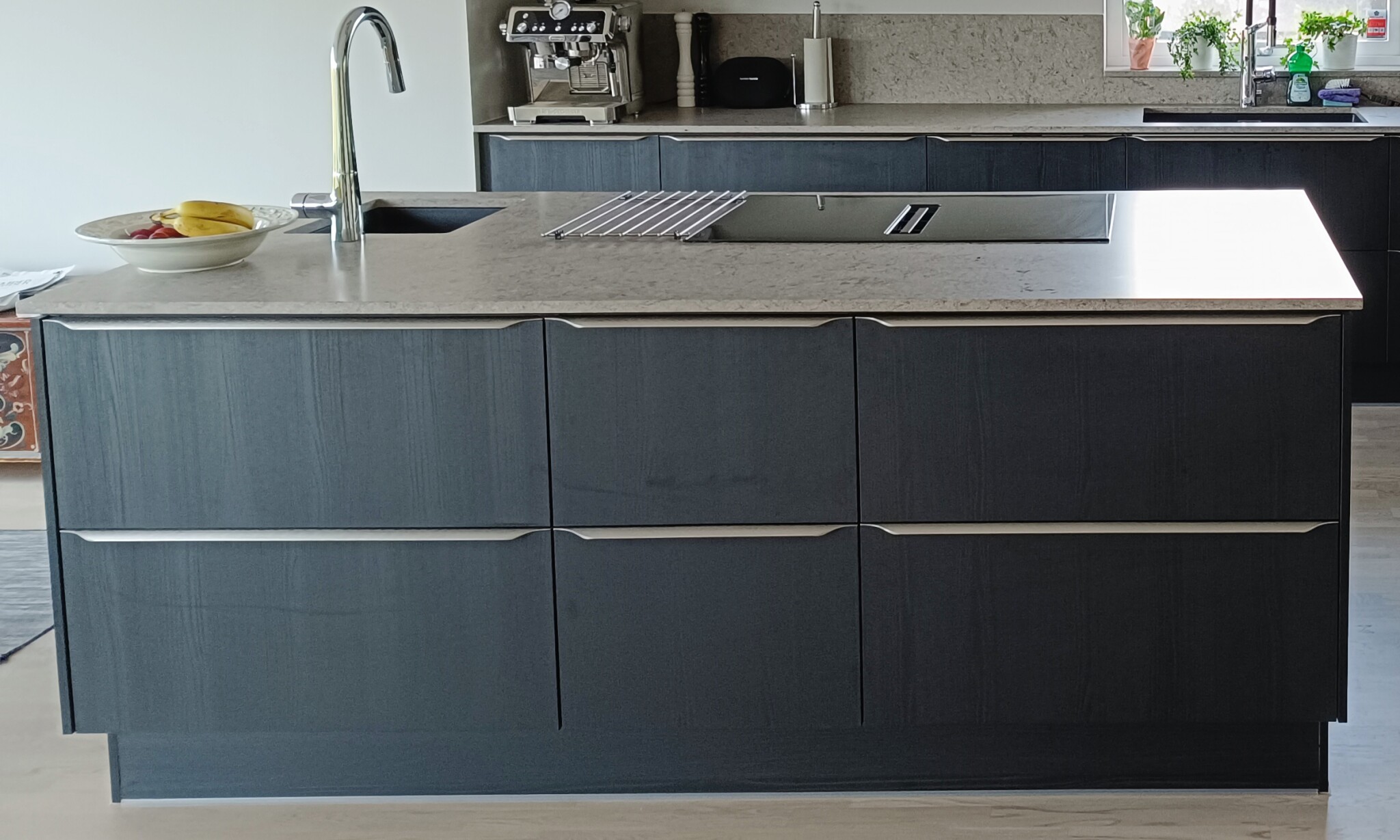 Jag förstår att du gillar iden men tänk om. Det blir en trevlig hängyta där du kan göra prepp, servera mm istället. Och ärligt talat, hur många minuter av matlagningen behöver du stirra på spisen jämfört med exempelvis hacka, preppa och fixa?