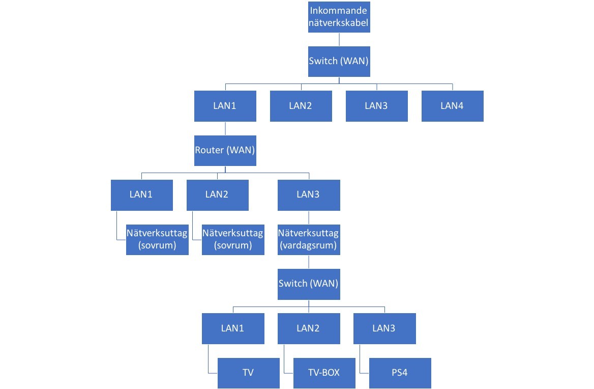 Efter routern så kan du montera hur många switchar du vill om du vill utöka antalet nätverksuttag.