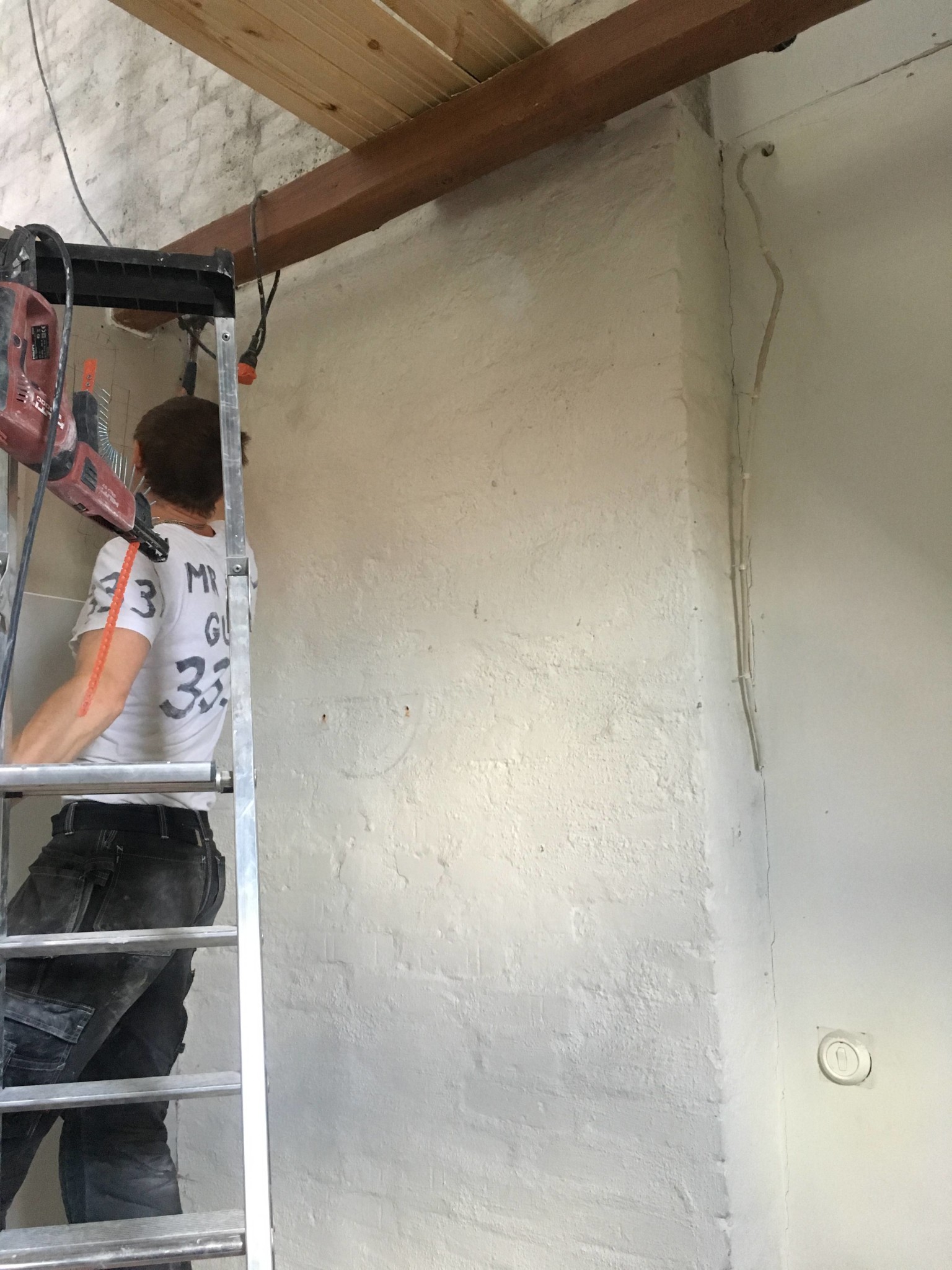 Vi vill såklart dels bli av med alla fula och lite läskiga missfärgningar, men sedan vill vi ju få en fin yta på väggen och murstocken och då är frågan hur man bäst går till väga.