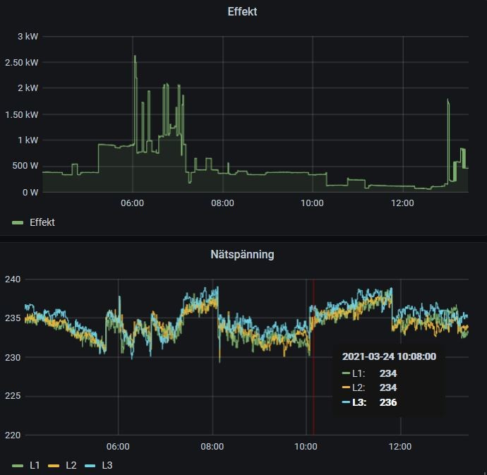 Kan någon kunnig inom eldistribution förklara vad spänningsvariationerna som min elmätare mäter beror på? Flera gånger per dag minskar eller ökar nätspänningen runt 5 volt från en mätning till nästa, ibland upp emot 10 volt. Det är inget problem, men det vore kul att få en förklaring.