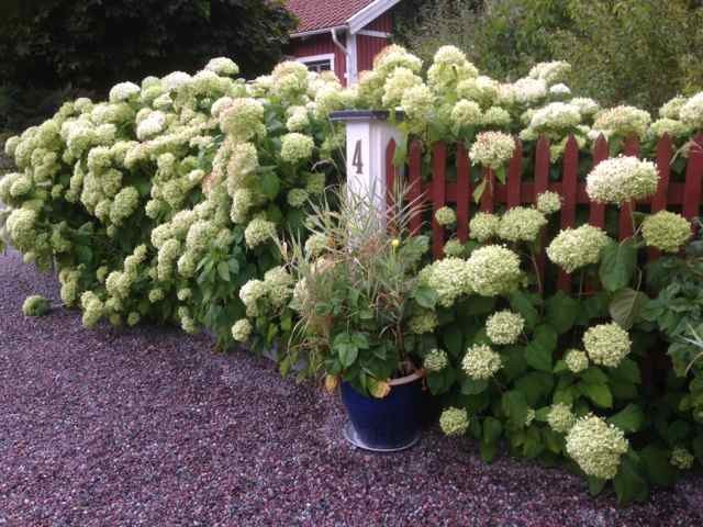 Gärna lite olika klängväxter som man kan variera med för att få ett vakert intryck. Är ett jätte långt staket.
