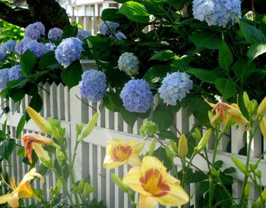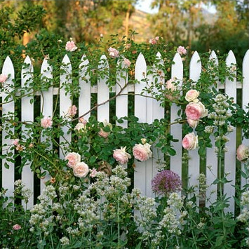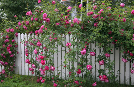 Istället för klätter kan ni sätta friväxande buskar som blommar, det är fint när de letar in mellan spjälorna. Ex vipp- eller vidjehortensia, rosor (vresrosor är anspråkslösa och tåliga, som 'Louis Bugnet' och 'Fru Dagmar Hastrup'). Bifogar bild i kommande kommentar.