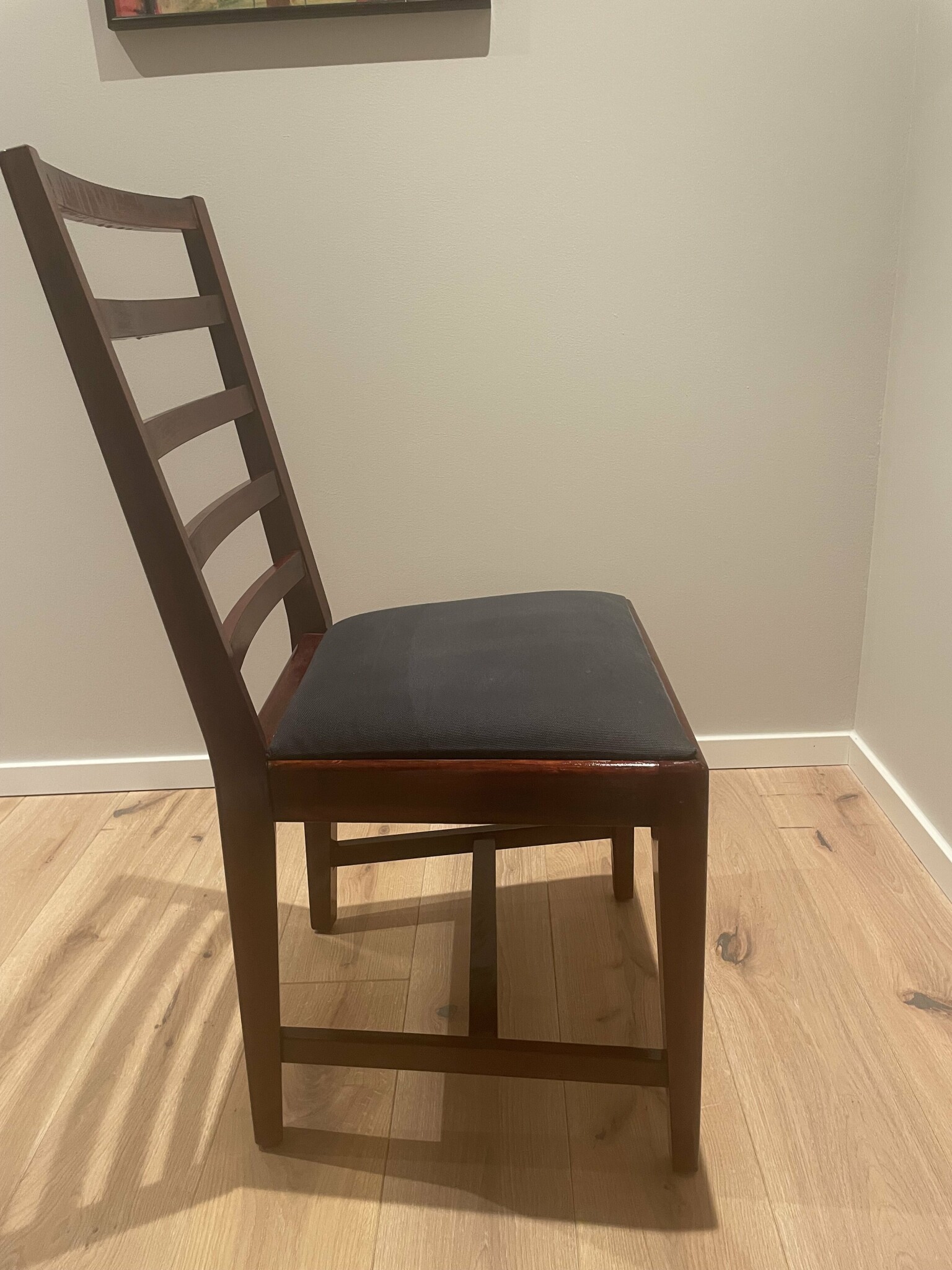 Jag tror att det var obehandlade ekstolar. Jag slipade inte utan torkade av, körde på herdin äkta bets och sedan betslack på.