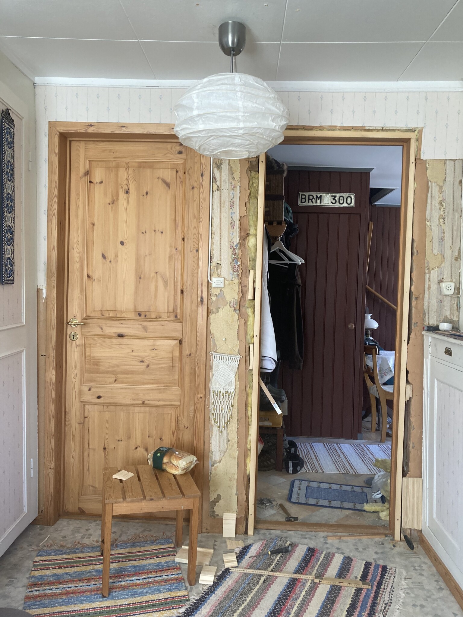 För övrigt vill jag helst kasta ut nuvarande dörrar från en tidigare renovering på 80-talet och försöka hitta lite bredare och 10 cm lägre dörrar som passar huset bättre.