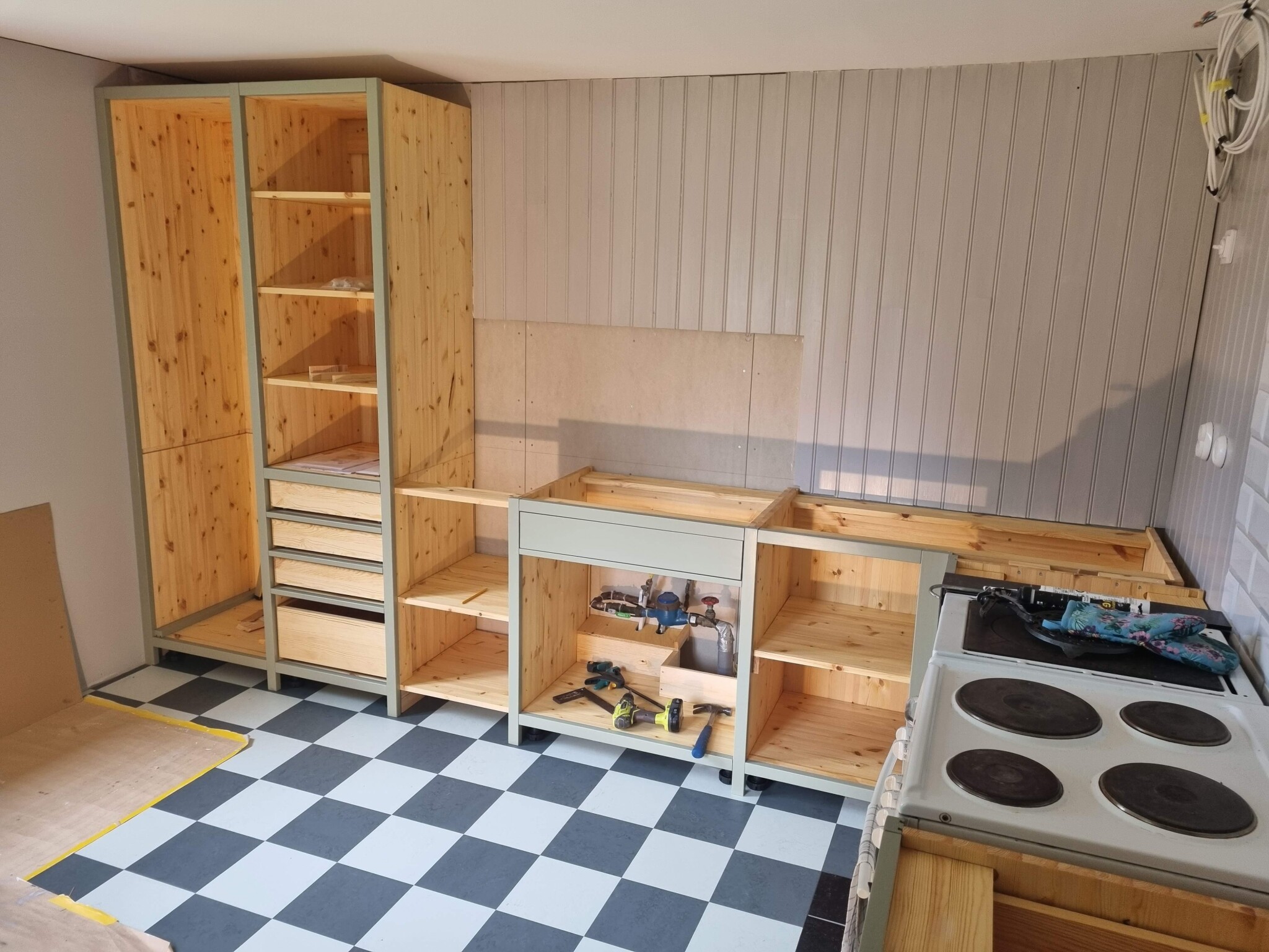 Men det värsta var att när vi väl hade byggt ihop modulerna och snickarna hade några dagar på sig innan semestern att bygga ihop köket upptäckte dem att alla moduler var felkonstruerade. En fräsning hade blivit fel i alla moduler vilket gjorde att hela köket skulle luta. Våra snickare fick stå och fräsa om alla spår, montera isär och ihop igen. En extrakostnad för oss på ca 20 000 kr plus en väldig stress.