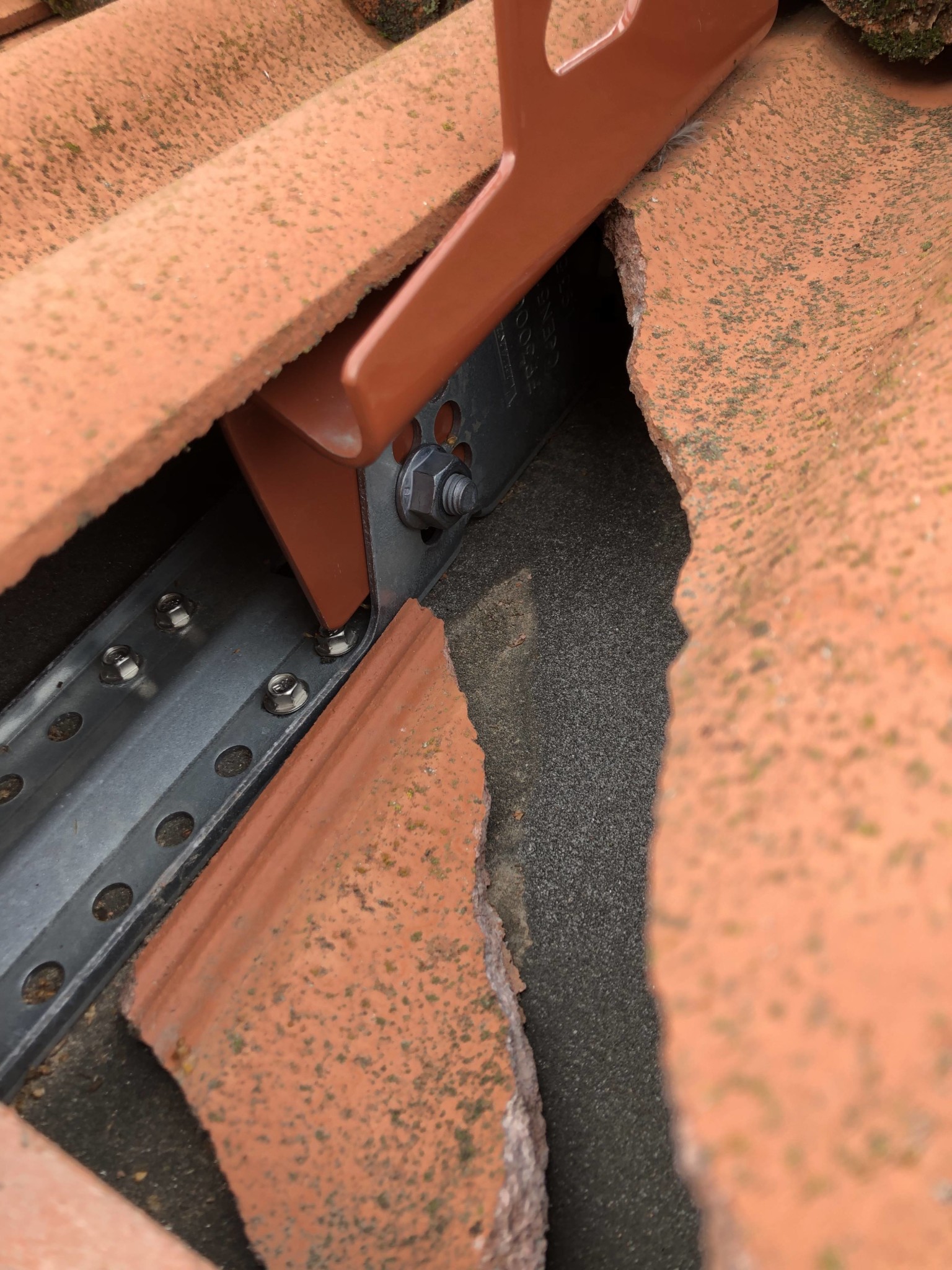 Är du säker på att det är rätt typ av fäste? Weland stål har olika fästen för lertegel och betongpannor. Bockningen där fästet ska ut i falsen mellan pannorna är olika. Vet inte hur det är med andra märken, men skillnaden på pannorna är ju samma.