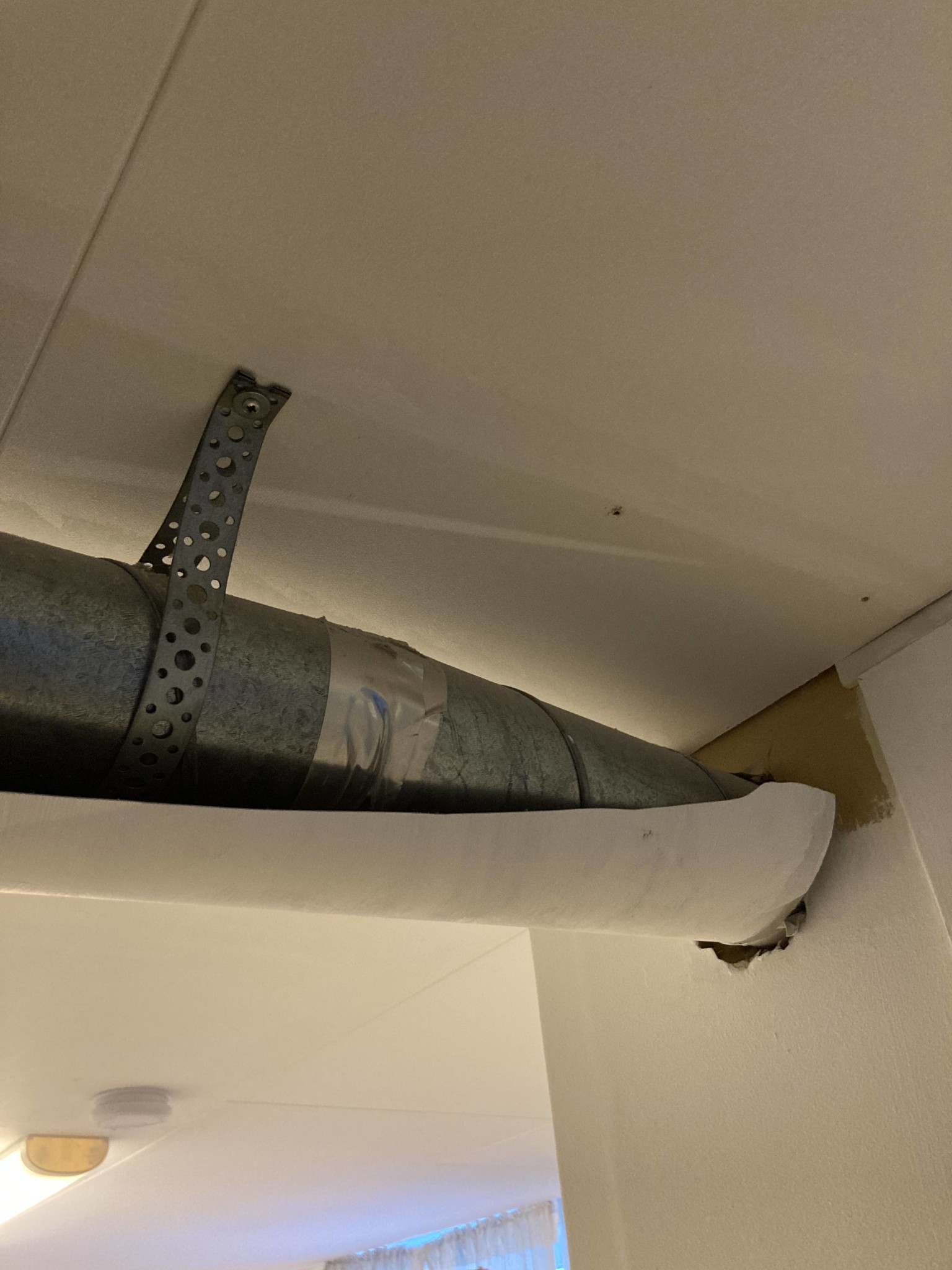 Tänkte för gipsa in röret men jag kommer i framtiden riva taket och gipsa om det. Hur gör jag detta snyggt nu? Det är ett ftx-rör i tvättstugan som går in i badrummet. Satt något plastskydd runt som jag rev ner nu när jag målade om badrumsdörren.