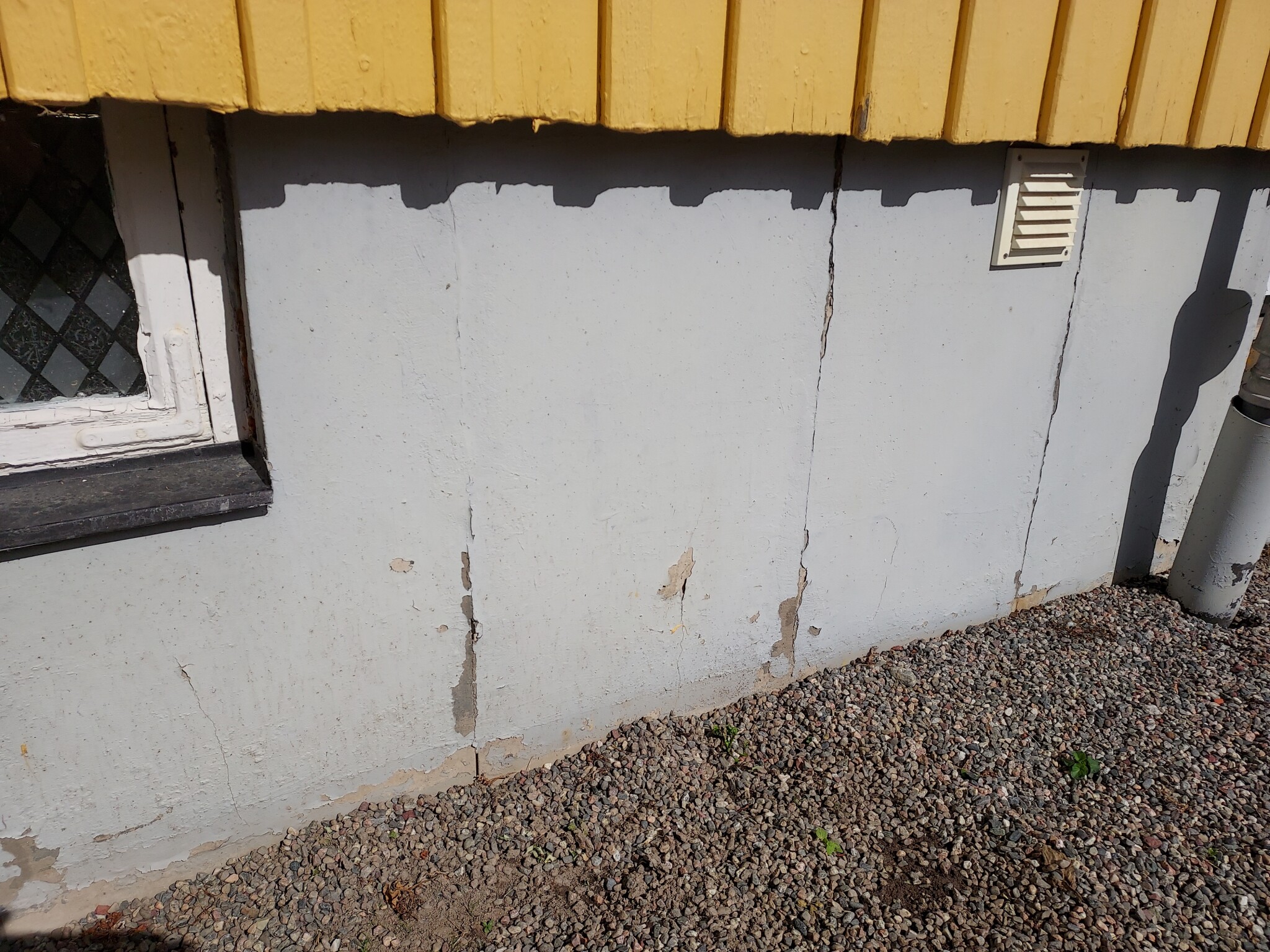 På huset från 1935 som står i Västerås har sockeln i efterhand täckts av betongskivor. Detta var någon gång före 1989.