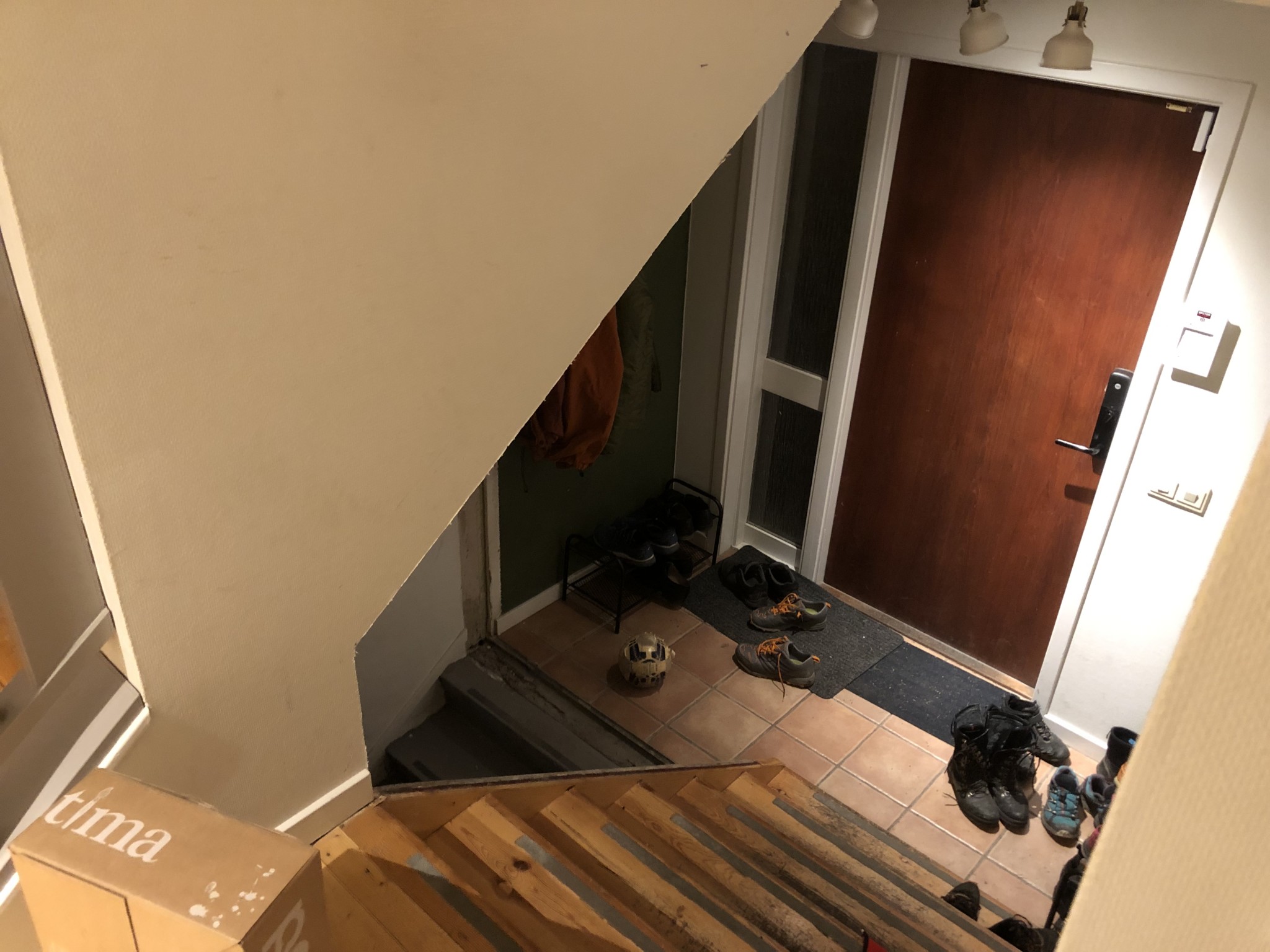 Halvtrappor med glassskivor, snyggt men jag skulle sankna överliggare tror jag.