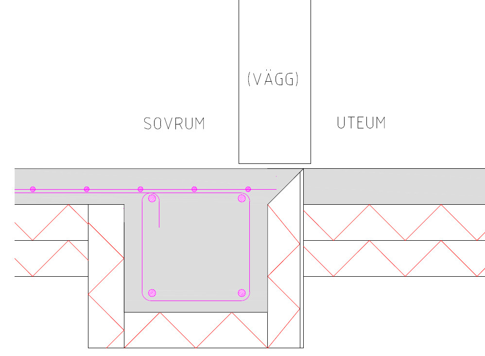 Har också funderat på att göra en gemensam platta utan köldbryggor. Men när det är som kallast ute så kommer det även vara kallt i uterummet, med följd att även sovrummet blir onödigt kallt.