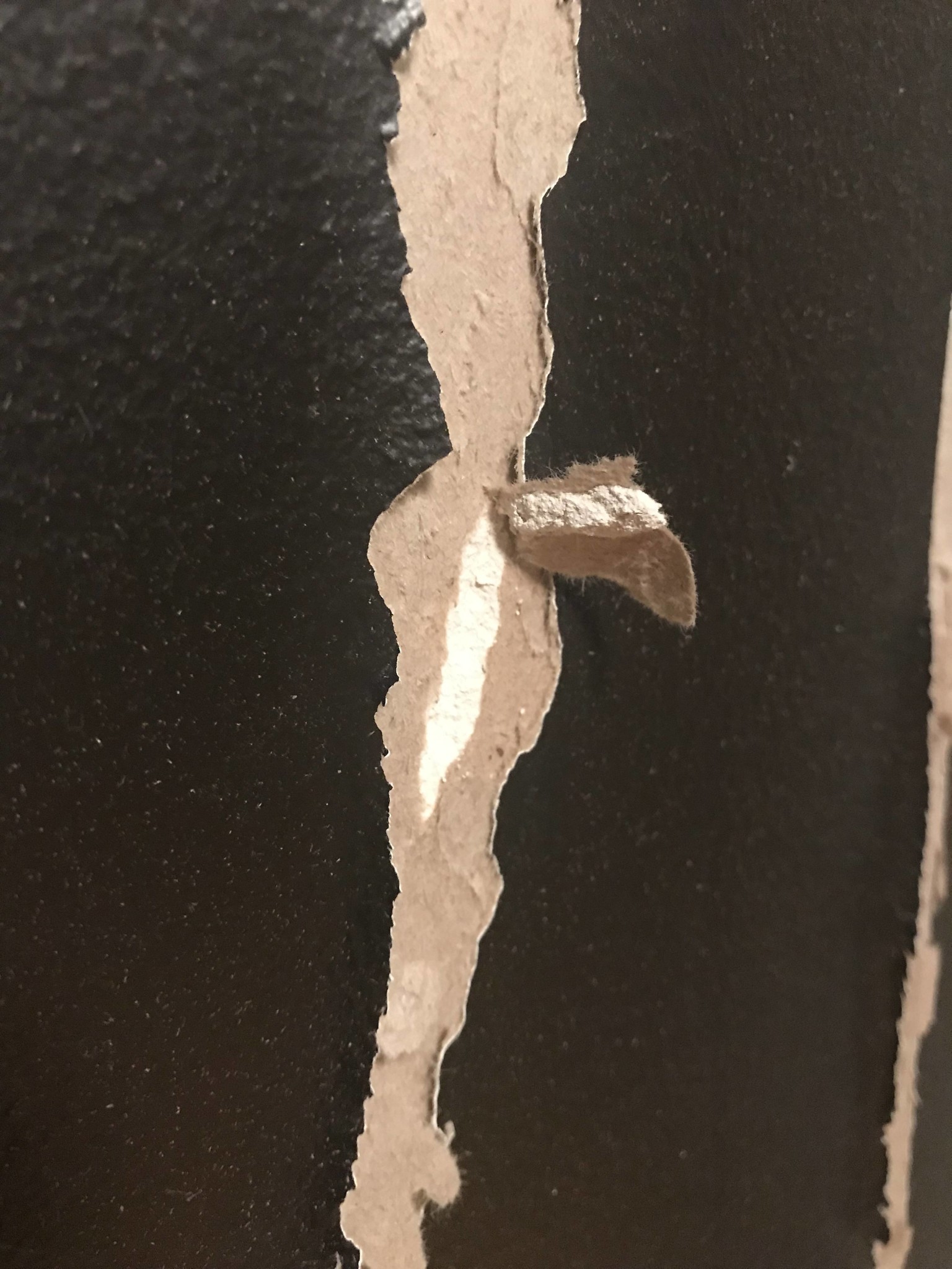 - Går det att spackla trots att kartongen är borta? Ska jag börja med att skära bort löst sittande färg/kartong? Något speciellt spackel jag ska ha?