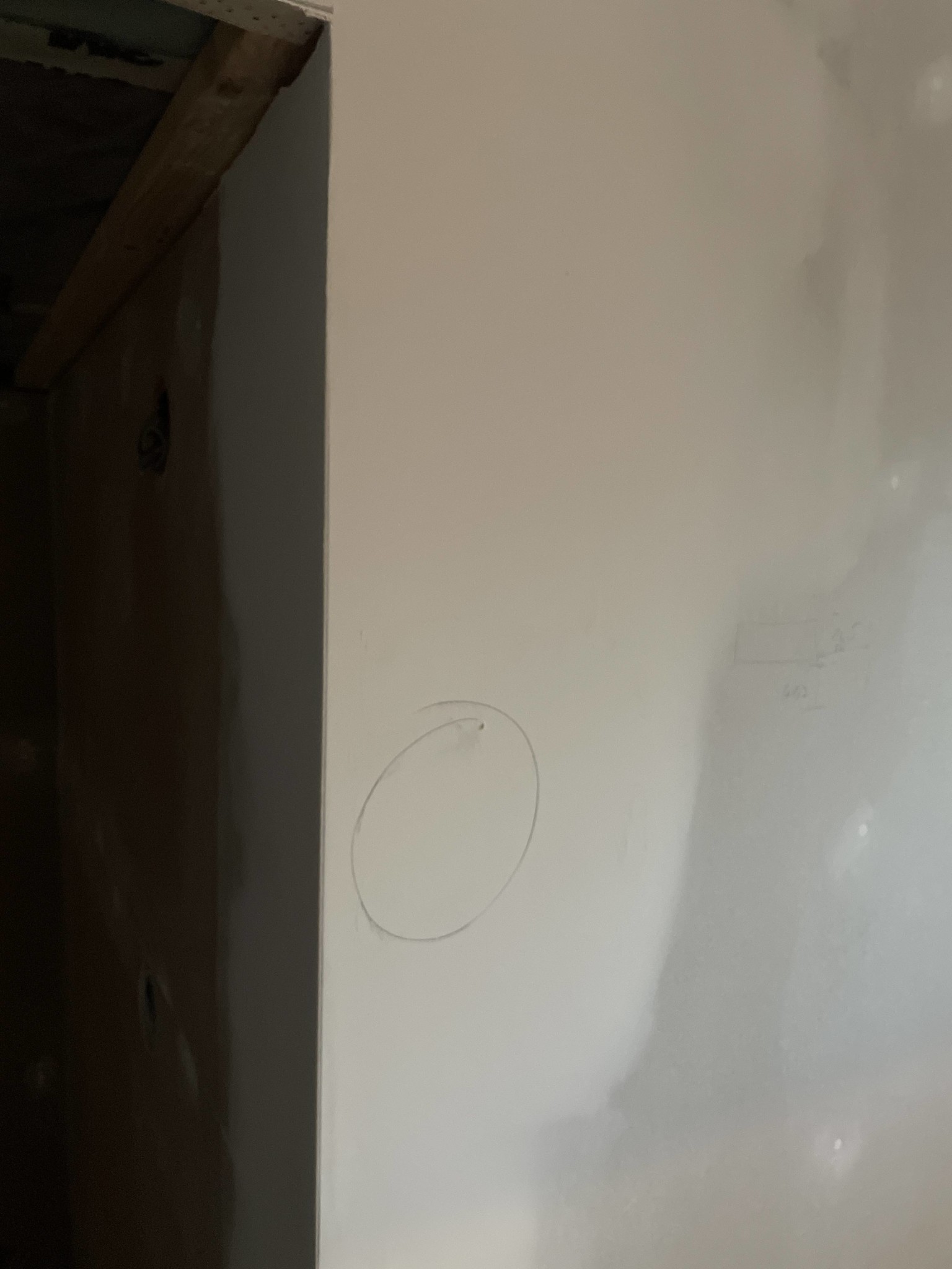Bifogar en bild från ett av mina hörn, ignorera cirkeln. Men du ser att jag har dragit ut spacklet en bit ut från hörnet för att bli av med kanten.