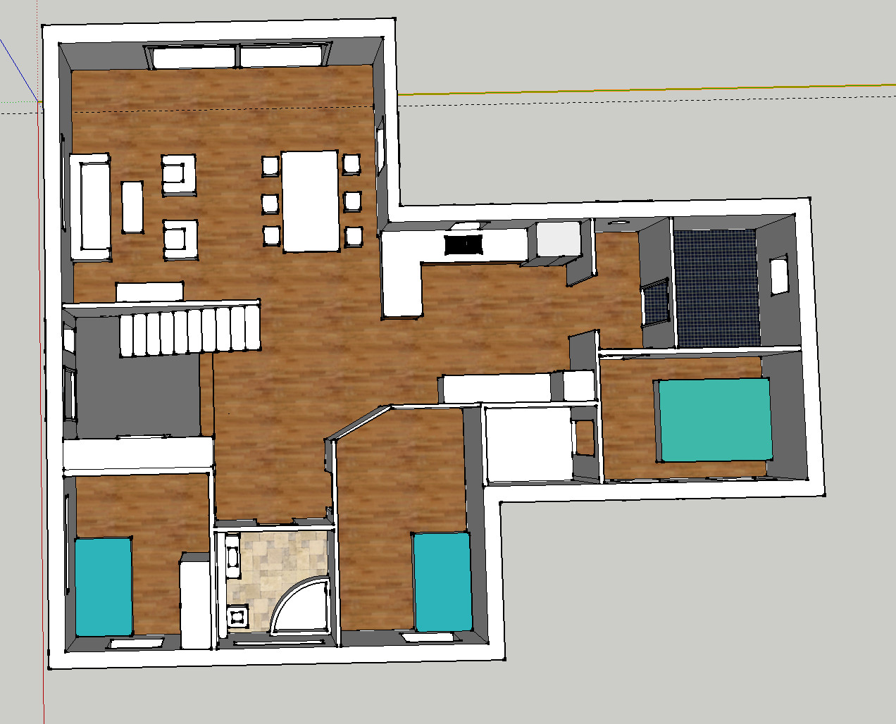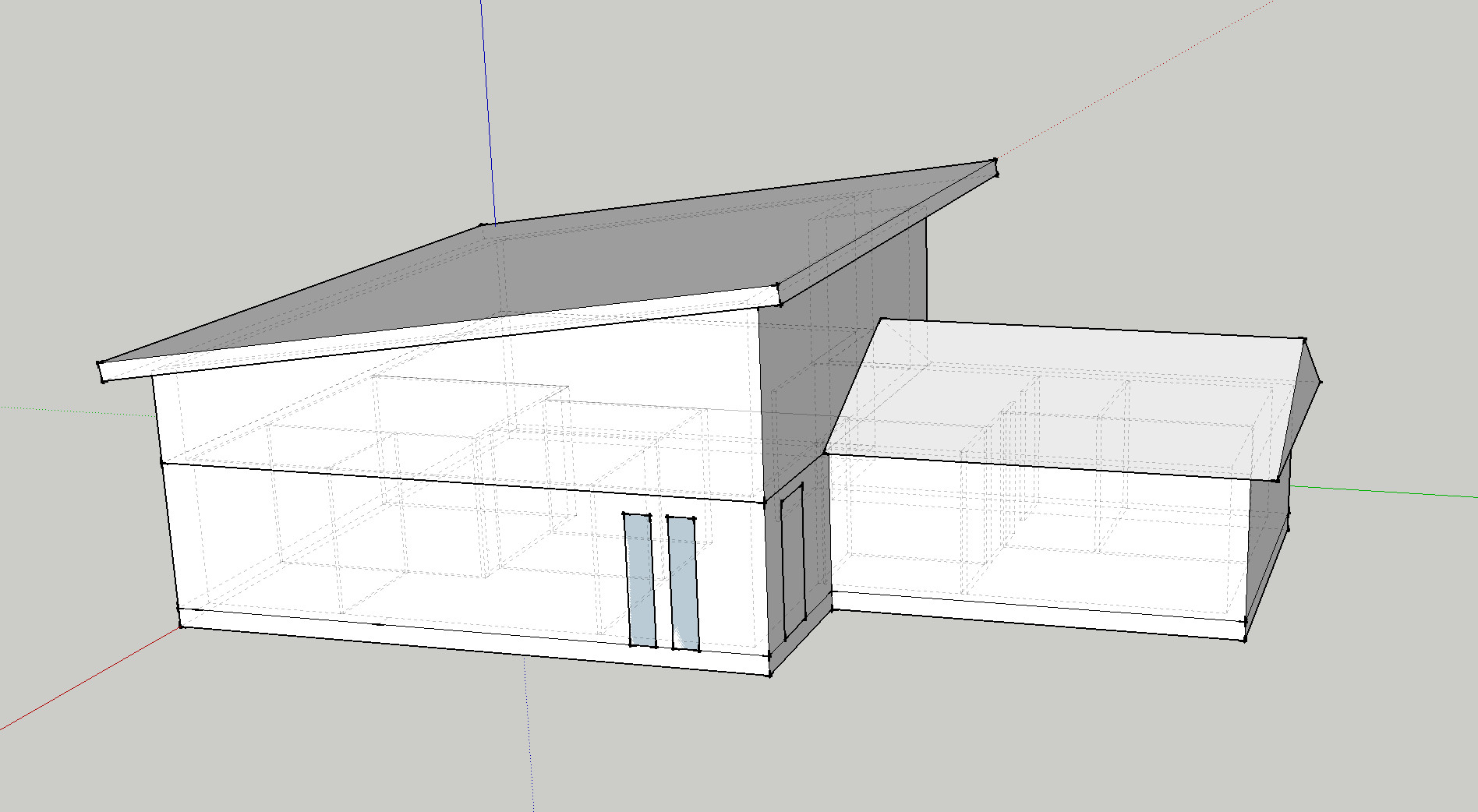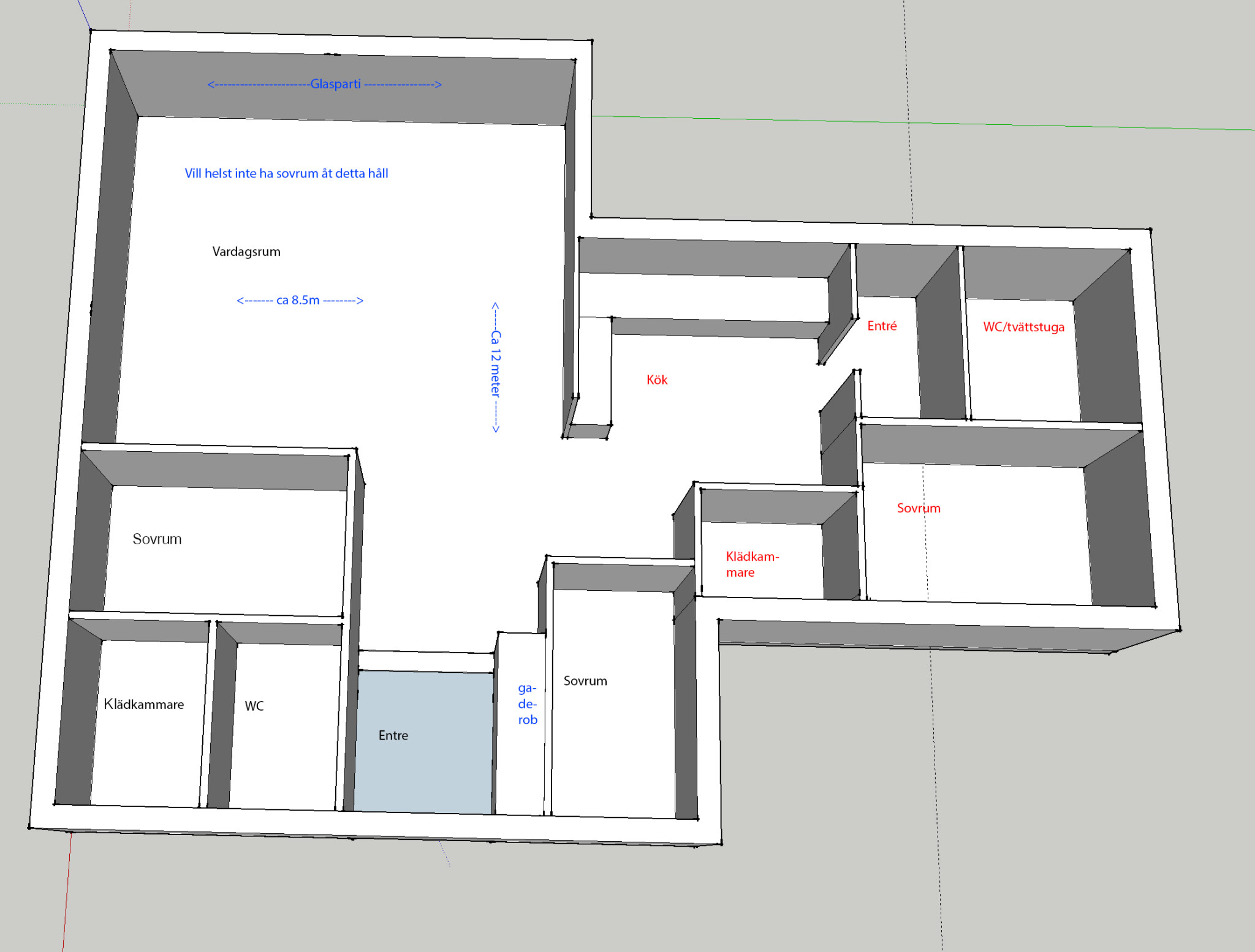 Jag har skissat lite i sketchup men tycker inte riktigt jag får till planlösningen som kommer bli 1,5 plan på den nya delen.