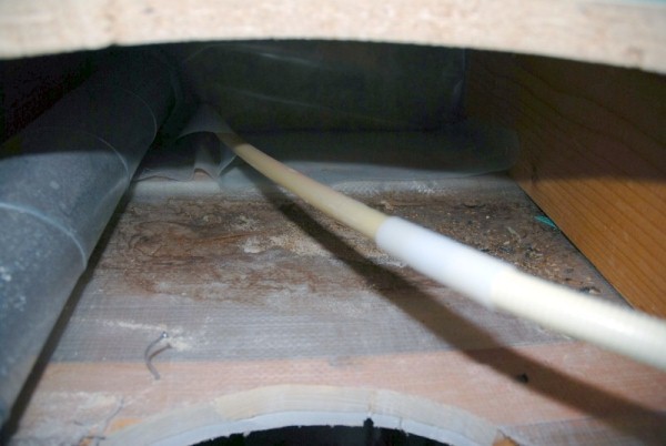 Allting är torrt och ingen lukt alls kommer av detta, men det har legat vatten där en gång i tiden. Hålet är gjort intill badrummet och jag funderar på om den tidigare ägaren har haft någon vattenläcka som han inte har informerat om. Hur går man vidare med detta, eller är det lönt att göra något nu när det är torrt?