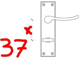 Självklart är måttet mellan handtaget och låsvredet allt annat än standard. Så nu undrar jag om och var det finns att köpa långskyltar för ett c/c-mått om 37 mm? (Se bild)