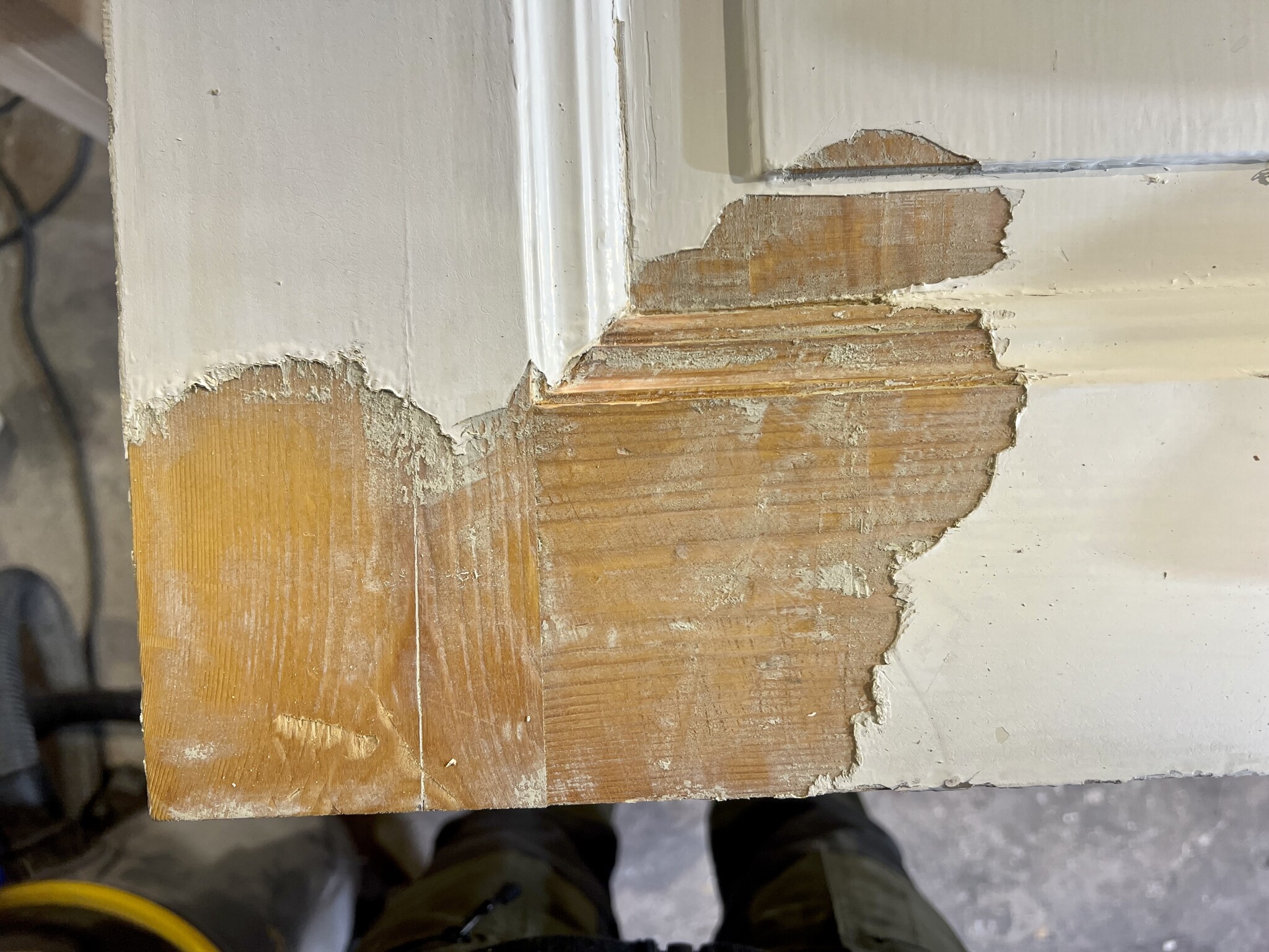 Jag tycker att du ska testa att skrapa trärent och sen måla med linoljefärg. Men! Gör det bara på en dörr som inte behövs så mycket så att du inte behöver stressa över att det drar ut på tiden. Först när du gjort hela processen en gång så vet du hur du vill/kan angripa nästa dörr eller fönster.