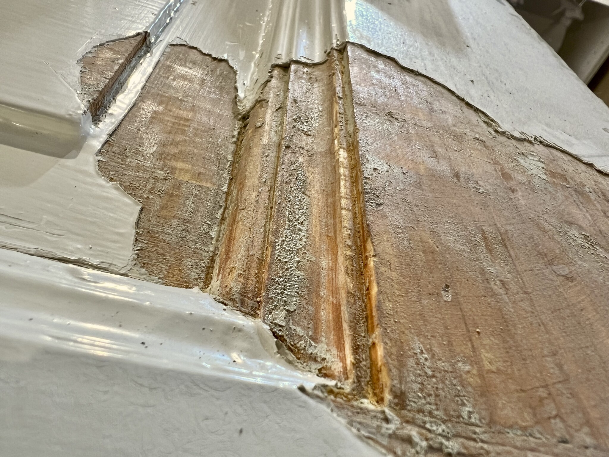 Ska all färg bort, använd värme så att färgen blir mjukare än träprofilerna. Värm försiktigt. Skrapa försiktigt.