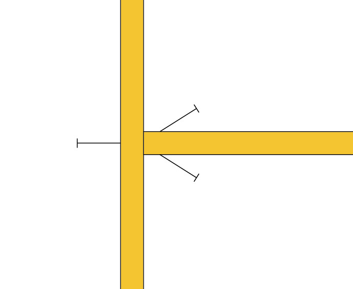 Okej då skulle det vara ritat 3st skråspikat. 2st från ena hållet och en i mitten från andra hållet? Men innebär det att man alltså ska använda hela 6st spikar vid varje bjälke? 3st rakut utifrån och 3st språspikade inifrån?