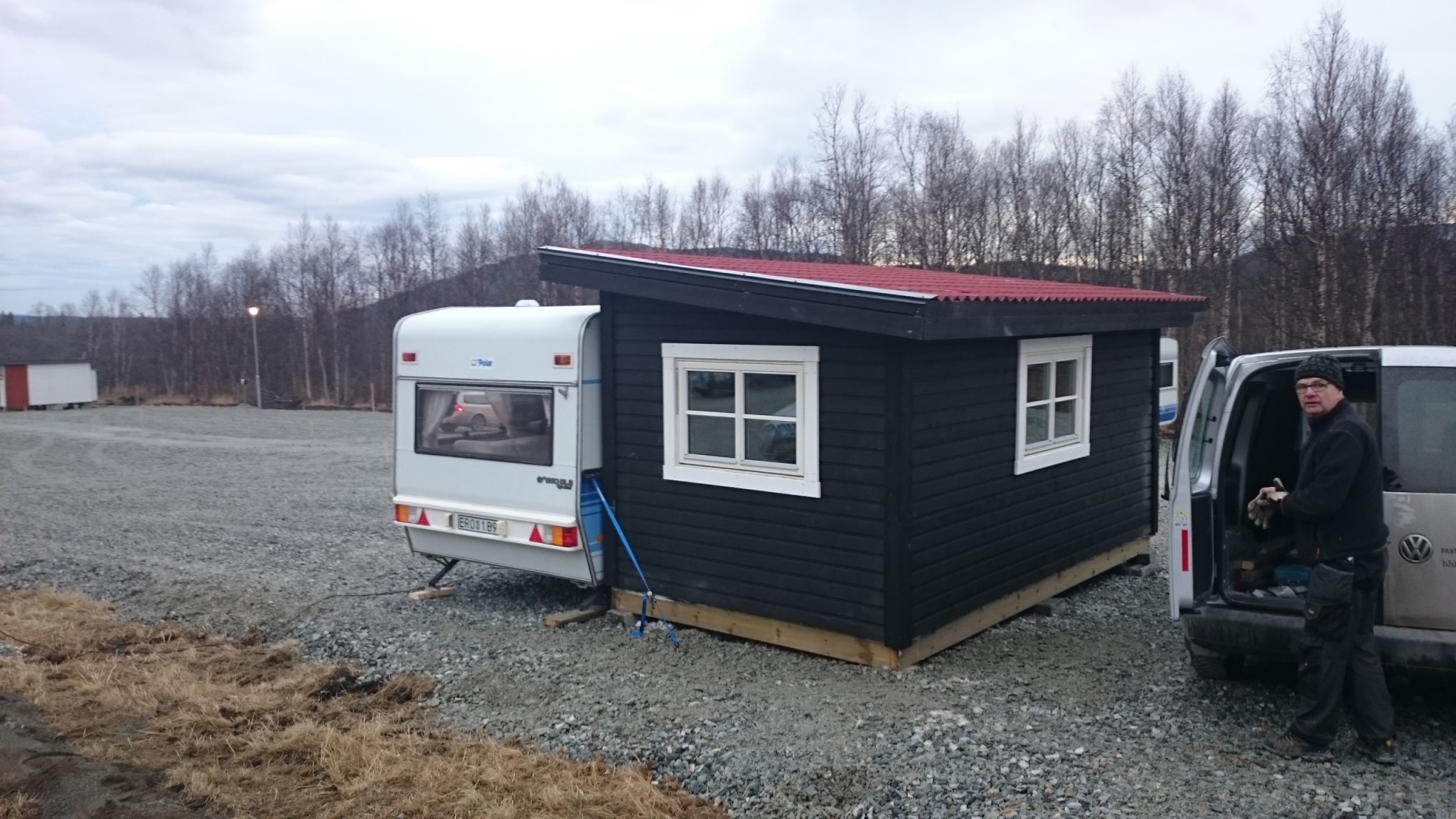 Golvet och tak är isolerat med 145mm och vägg är 70+45. Måtten är 2,4m x 4,5m vilket är maximalt vad campingen tillåter.