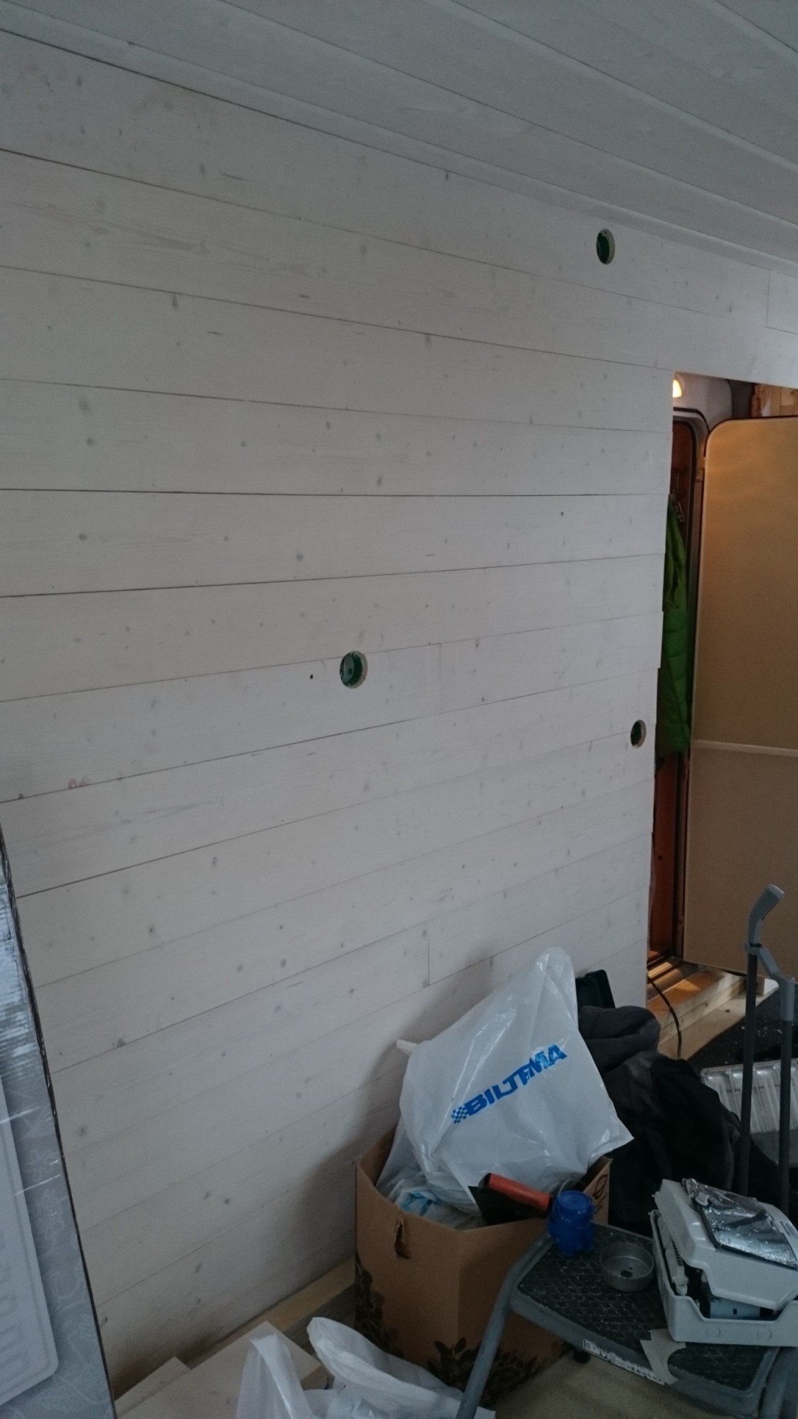 Andra helgen började vi invändigt, monterade dörr och LED spottar i takfot.