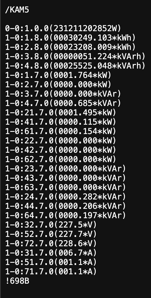 Ok sen ska då elmätaren vara aktiverad med HAN-P1 så att du får ut dsmr.N nuls skrev:Jag tror att det ska vara löst med den P1-splitter jag använder, då den matas med 5V 1A som den sedan vidarebefordrar. Dessutom får jag en liten smula data var 10e sekund (även om det är fel data) så nån slags kommunikation sker ju.