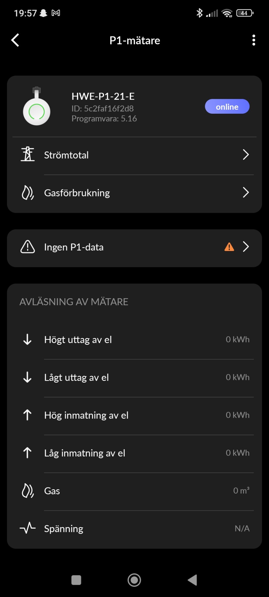 Fungerade mätningen i appen INNAN du uppdaterade din HomeWizard? Om så var fallet skulle jag kontakta HomeWizard-supporten och kolla med dem om vad som har hänt.nino skrev:
