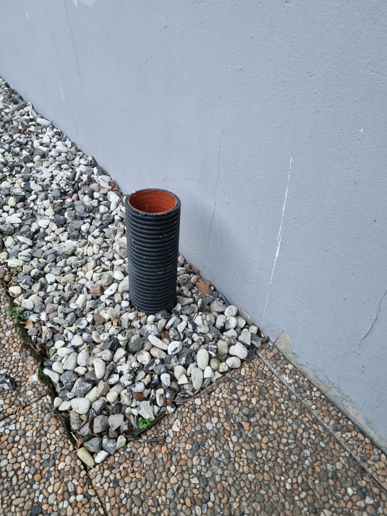 Vårt hus dränerades 2010, inredd källare med bra klimat. Det sticker dock upp ett rör vid husgrunden vilket jag tror är ett spolrör?