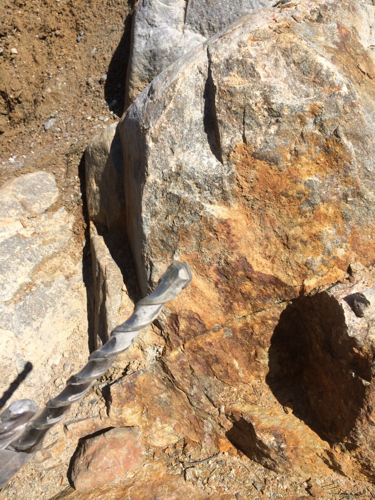 Har nu borrat med en Hilti MD20 bergborrmaskin och slagit med kilar. Gick riktigt bra fram till bergborrmaskinens fäste till stålet gick av :/