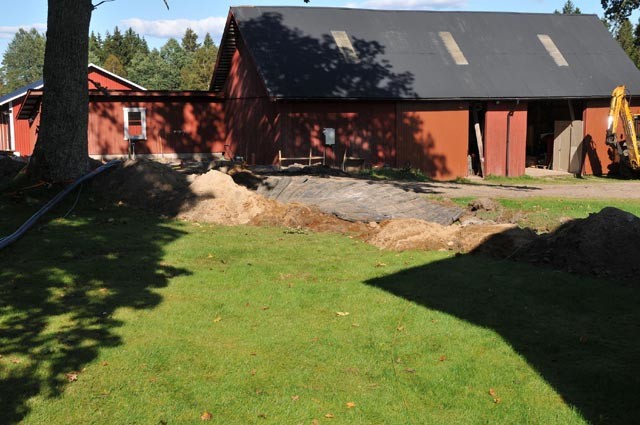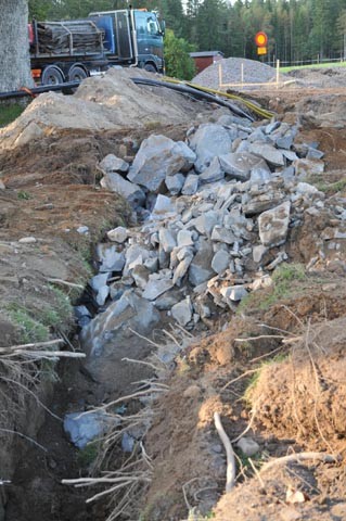 Behöver tyvärr få ner den en bit då jag tänkt ha gräsmatta över.bonnen skrev:Ser väl inga problem med att ha en kulvert liggandes öppet klarmrad mot berg, förutom risken för påkörning. du får lösa det med påkörningsskydd.
