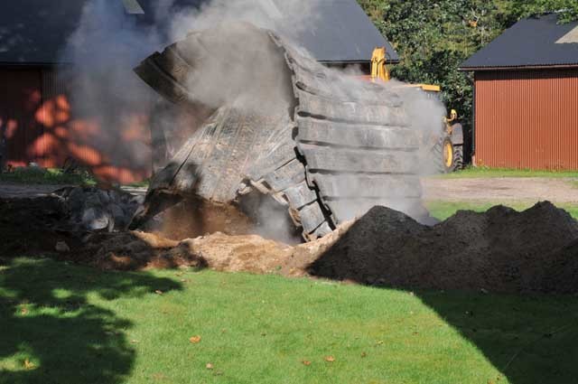 Grävmaskinen behövs väl sedan oxå för att ta bort all sprängsten och sedan en dumpers för att transportera bort stenen. Sprängd sten har en underlig förmåga att växa i volym