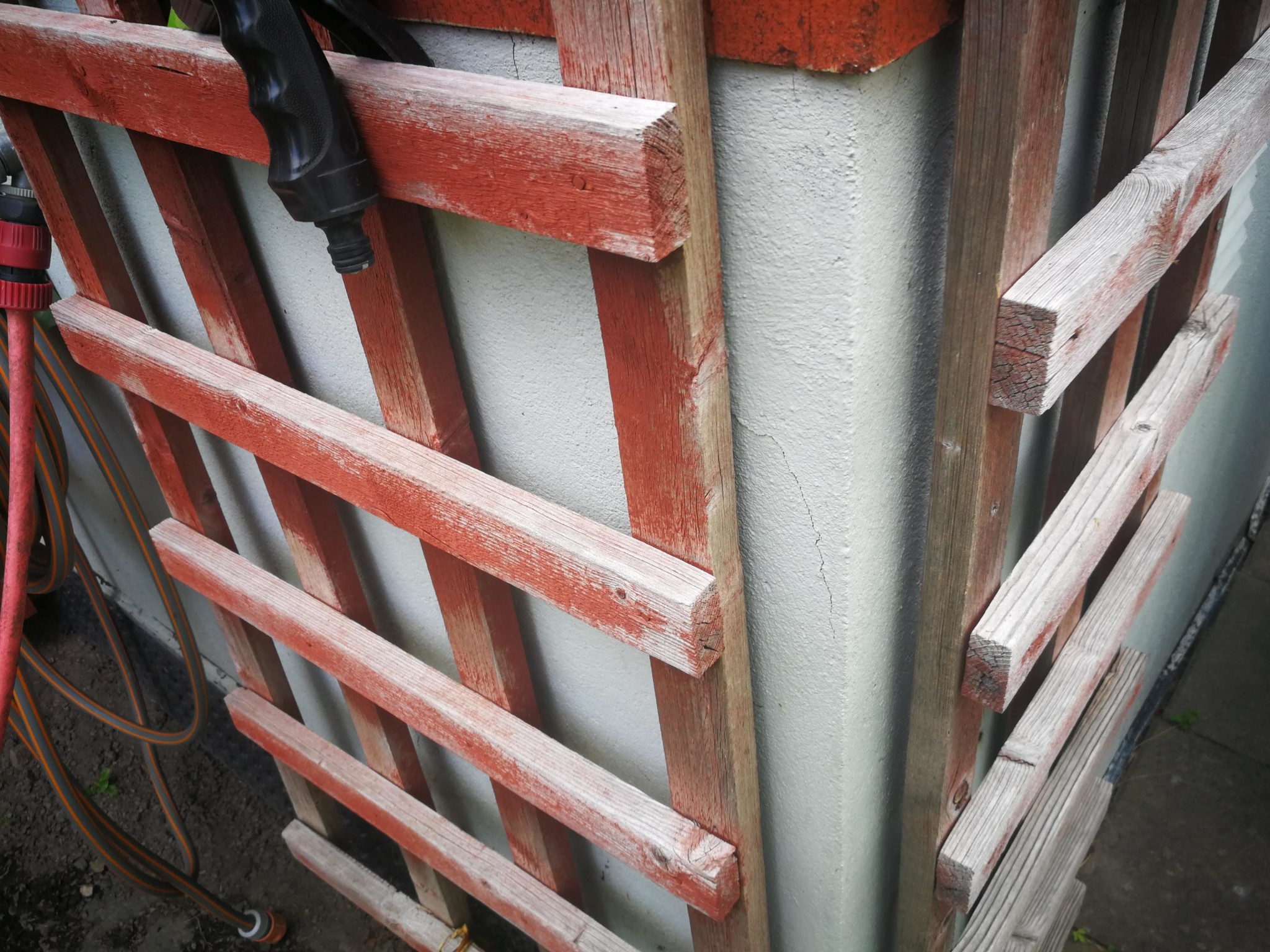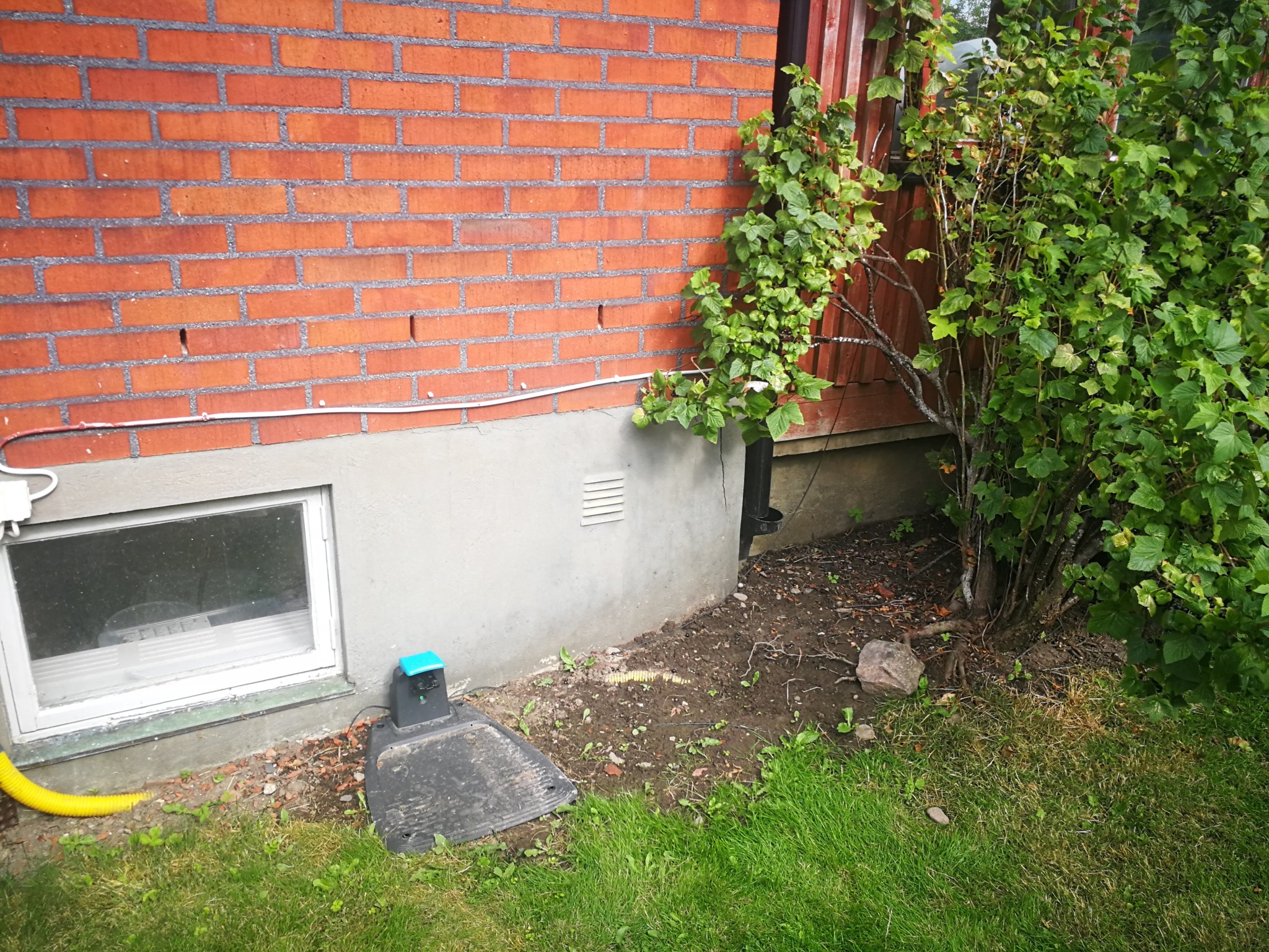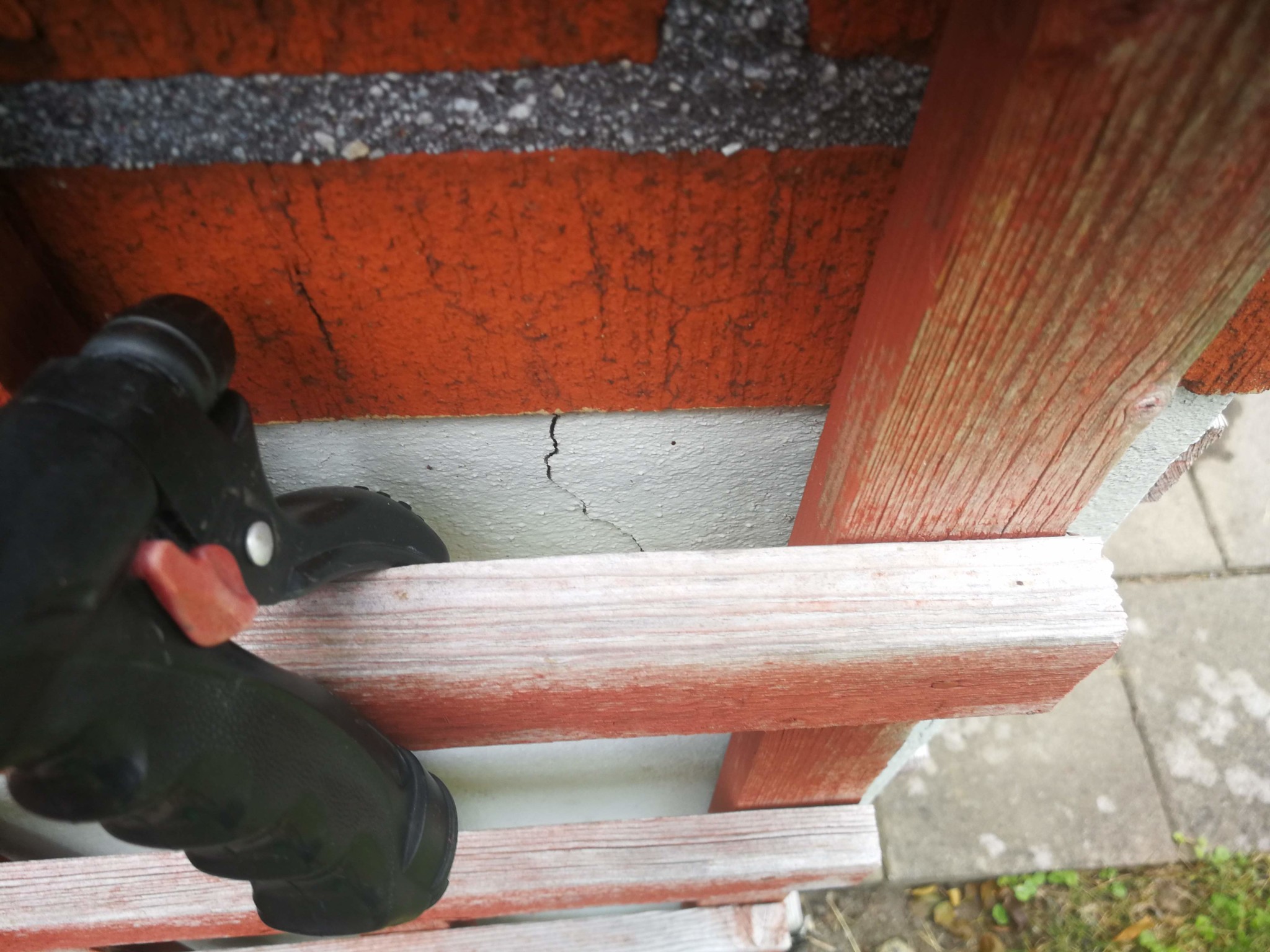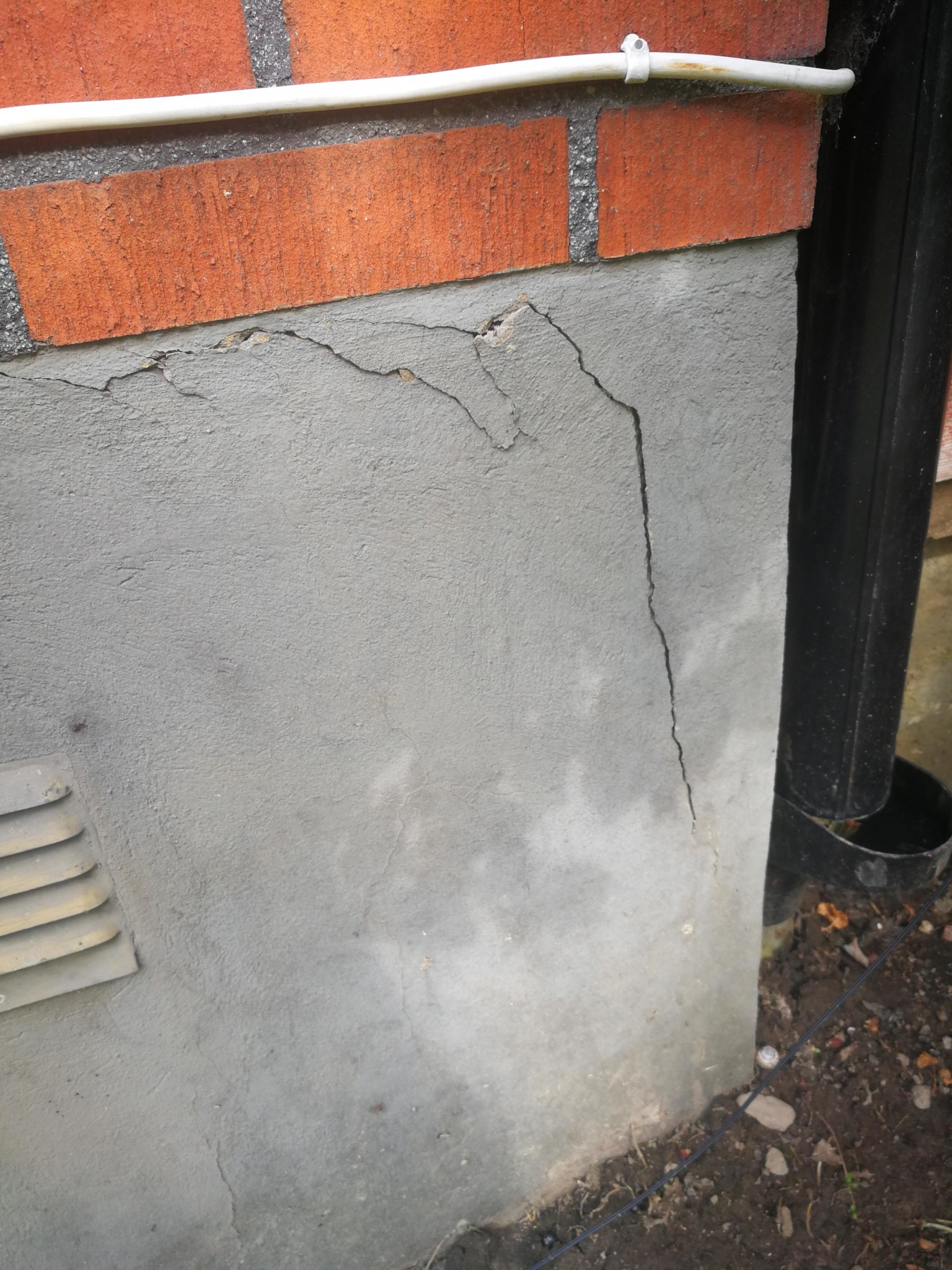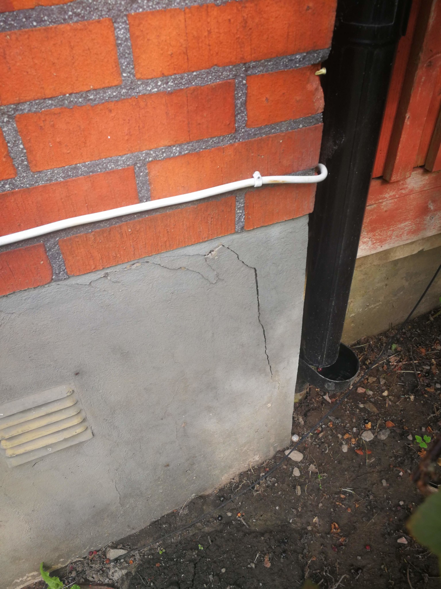 Jag kan ingenting om hus, men detta är alltså någon slags puts eller ytlager som släppt? Är det förmodligen några slags leca-block som håller uppe grunden?