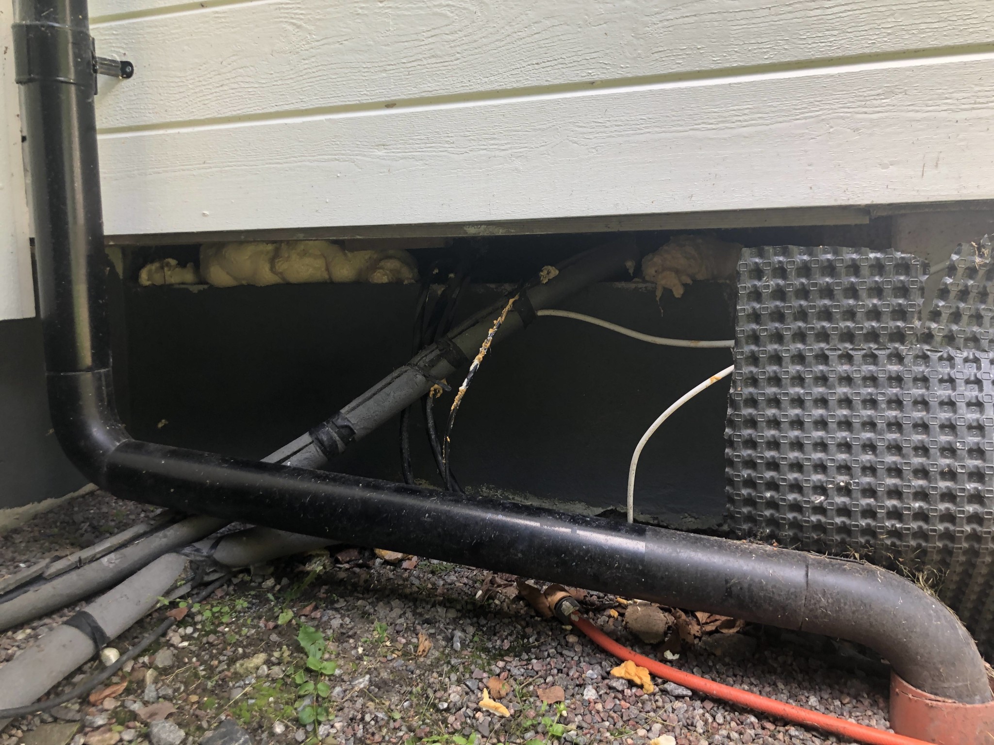 De svarta slangarna på bilden ska bort, tillhör gamla vattnet som inte längre är i bruk ( kommunalt vatten indraget annan och bättre väg).