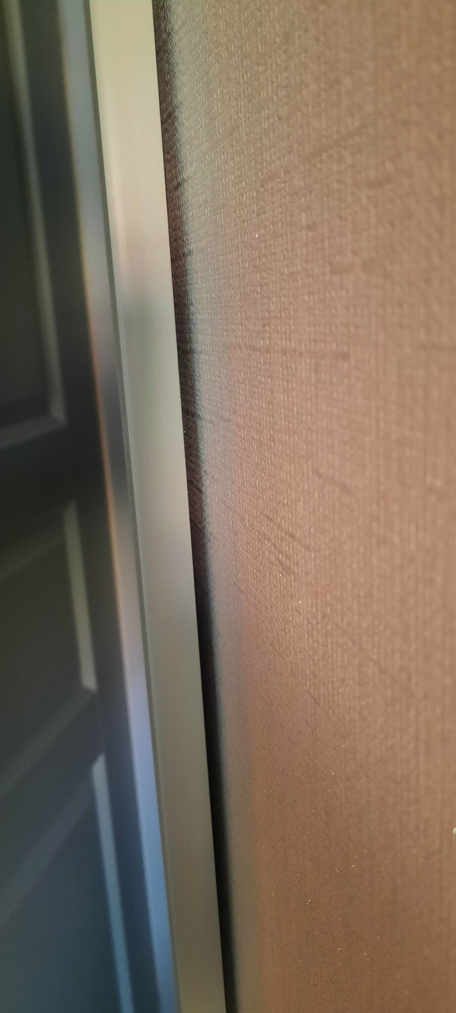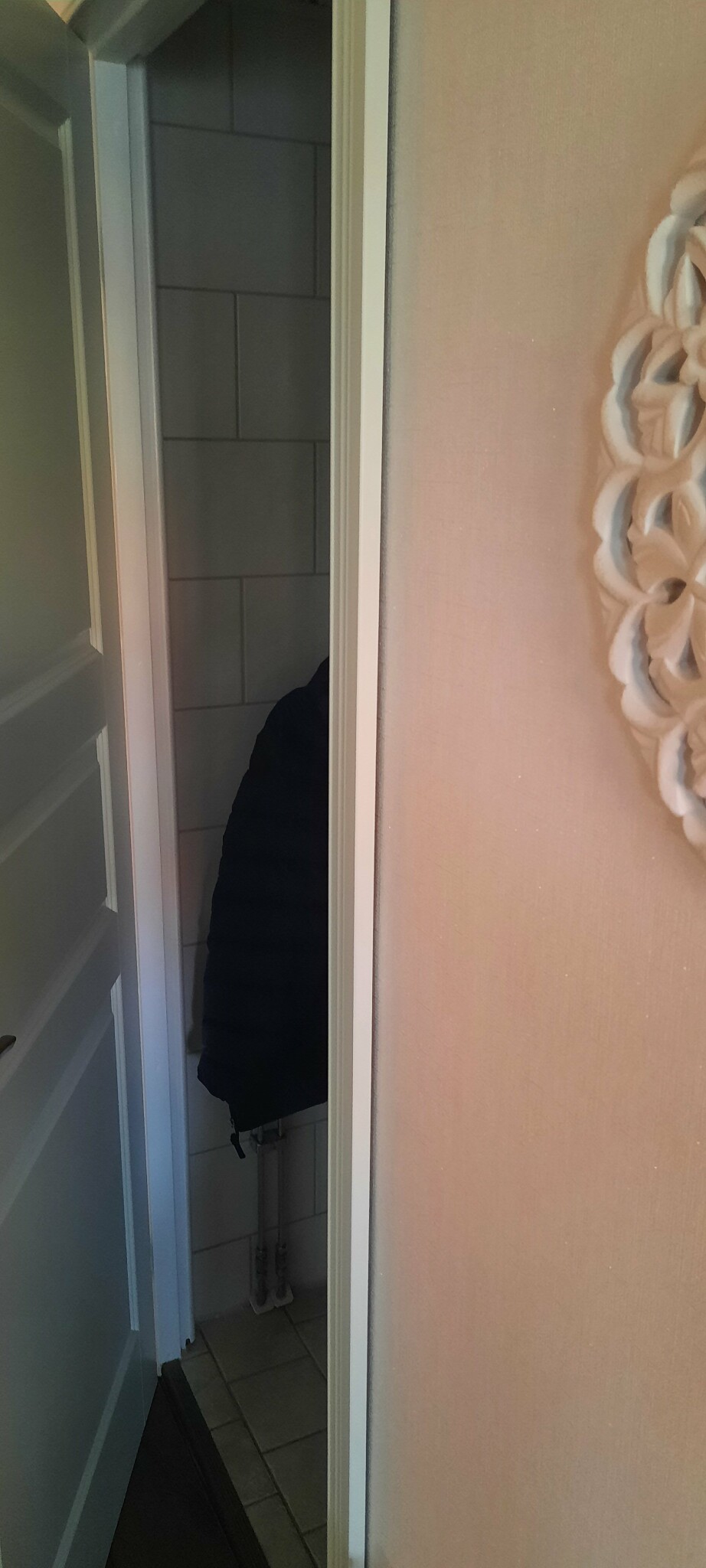 Vägg o dörrkarm låg någorlunda i sala typ.