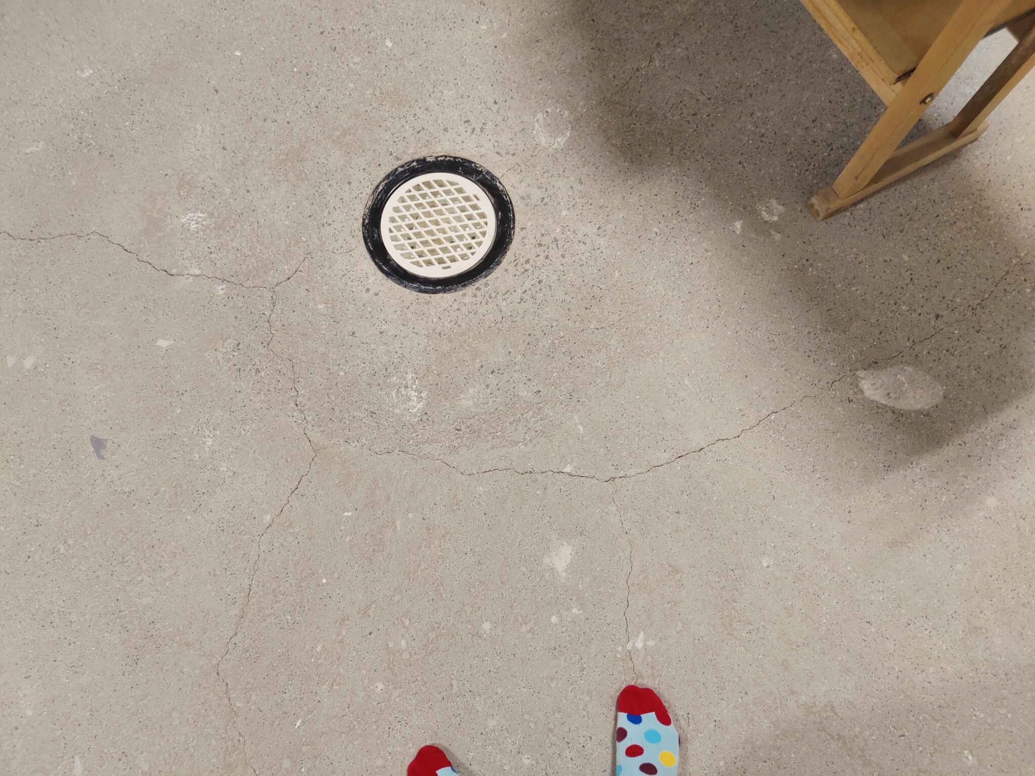 Jag kan ingenting om betongplattor, men jag vet att dom kan få ytliga sprickor om plattan inte vattnas ordentligt. Sprickorna ifråga är inte speciellt breda, men dom är många och synliga. Sprickorna löper någon/några meter innan dom försvinner, dom tycks vara som mest koncentrerade kring golvbrunnen.