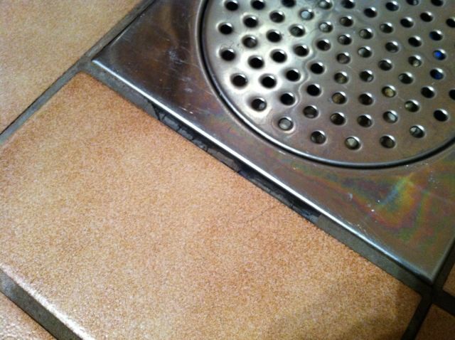 Silikon skall man normalt inte använda i fog mot risten, det skall kunna passera vatten under fogen på sin väg mot brunnen.