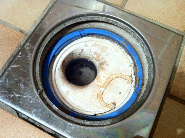 För någon vecka sedan upptäckte vi att klinkerfogen vid brunnen vid duschen började spricka, sedan dess har det lossnat en del bitar som ni kan se på bilderna.