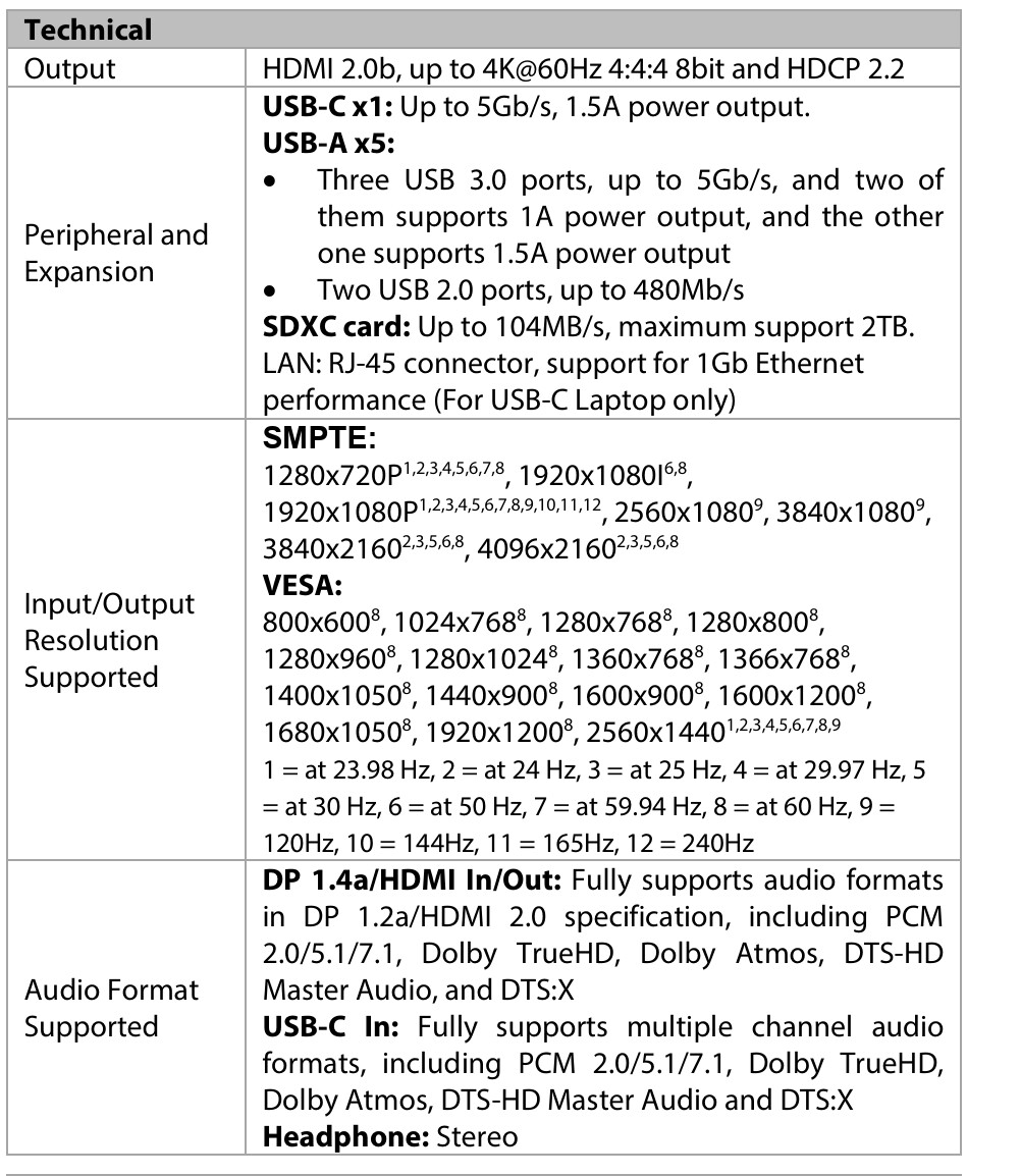 Enligt specifikationen nedan supportas 3840x2160 SMPTE, 3440x1440 listas inte alls. VESA känner jag igen men vad är SMPTE? Det har med TV att göra tror jag? Kan man räkna med att dessa upplösningar fungerar genom switchen?
