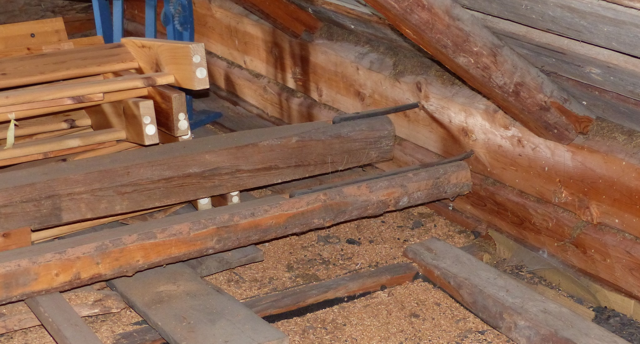 Stagen mellan väggarna, som håller ihop de övre stockarna i ett timrat hus