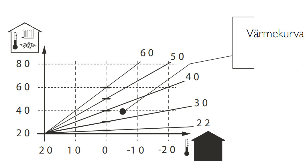 En elpanna är bland det enklaste man kan ha för uppvärmningen. Värmekurvan styr vilken temperaturen ska vara på värmevattnet som skickas ut till radiatorerna eller golvvärmen beroende på hur kallt det är ute. T.ex. 40 °C varmt när det är ±0 °C ute kallas här kurva 40.