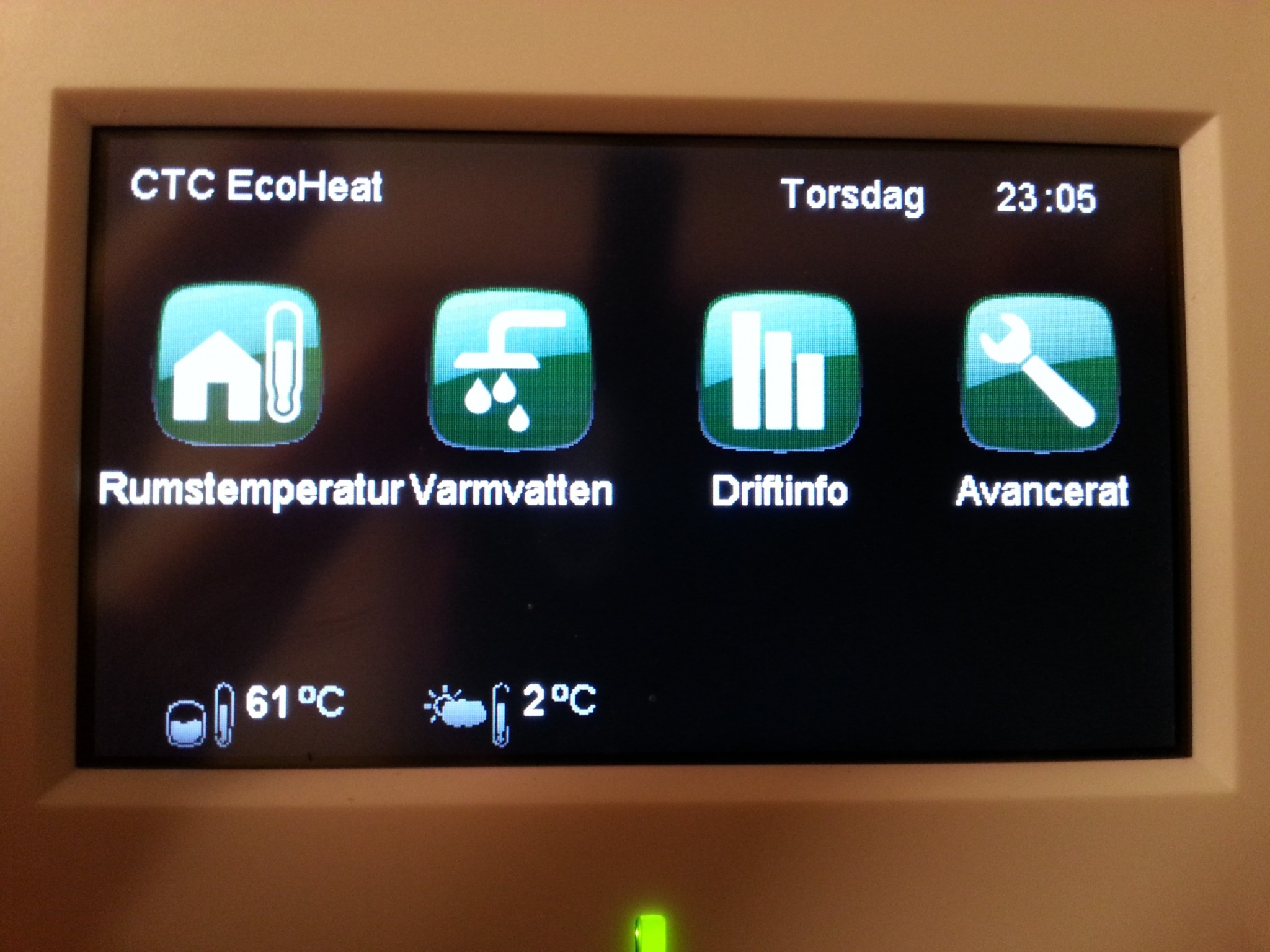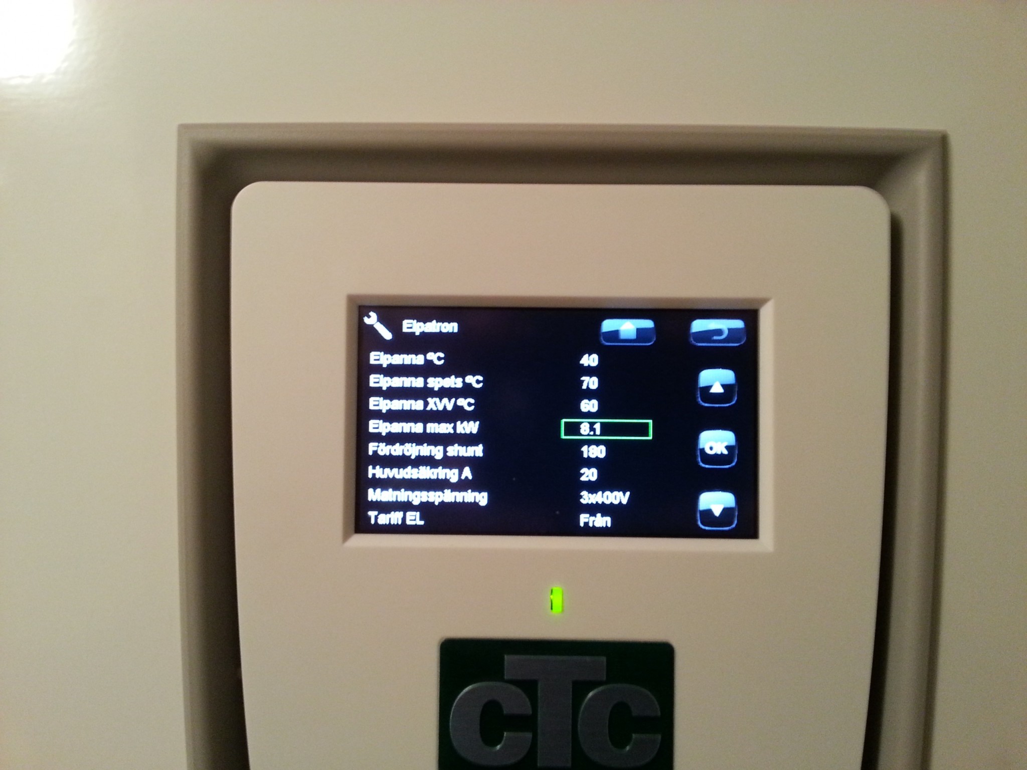 Låter som nått är fel om vp drar 60 kwh per dygn en 8 kw vp drar runt 2 kwh när kompressorn går vilket ger ca 48 kwh per dygn om den går hela tiden går din kompressor hela tiden vid 0 ute ?Malisan74 skrev:Någon som är duktig på att ställa in bergvärmepump ctc eco heat 408 vad ska man tänka på? Tycker den drar mycket per dygn, runt 60 kw per dygn på 0 grader natt och 3 grader dag. Vad kommer den dra på -10. Har den inställd på 60 på kurva och får 21 grader. Om någon har bilder snälla ladda upp era inställningar som fungerar bra hos er