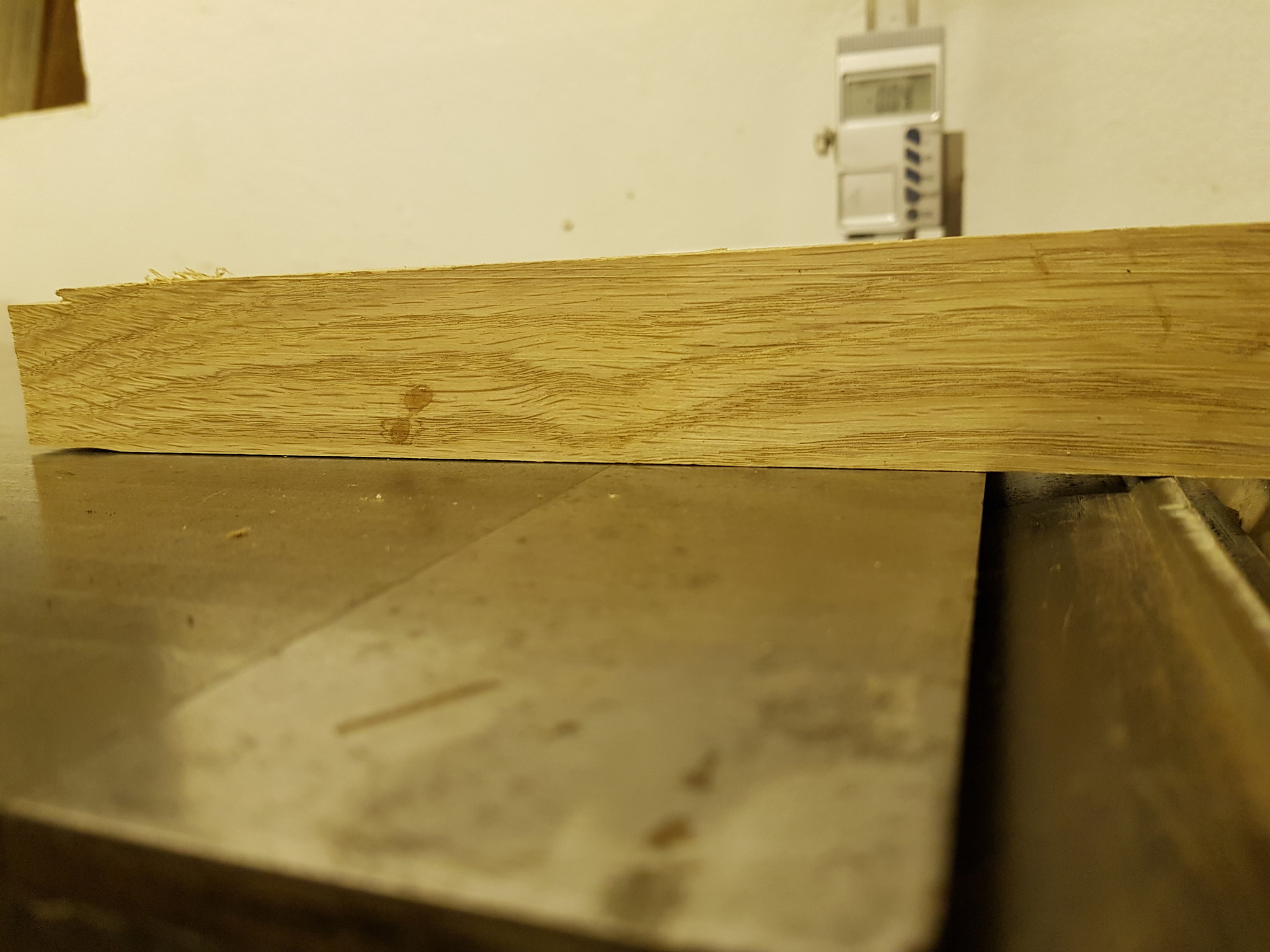 Jag har en gammal Jonsered gjutjärnsrikthyvel som jag nog aldrig varit riktigt nöjd med men som jag nu försöker få lite fason på. Hyvlar jag på den så blir ämnena lite bananformade vilket syns på en av bilderna. Ämnet lyfter mot utmatningsbordet.