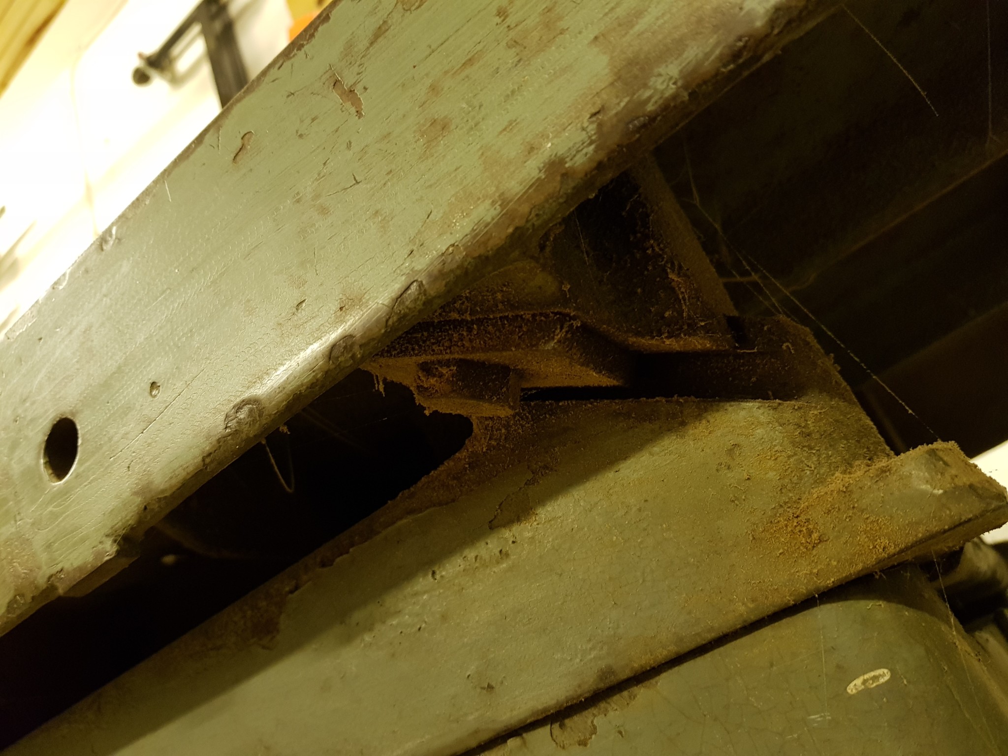 Jag hade tidigare en Jonsereds rikt, dock äldre än din. På den satt både in- och utmatningsbord på 4 st "kilar" liknande de på din sista bild. Med ratten (en för varje bord) reglerades höjden på borden. Utmatningsratten användes bara vid postning av stålen, inmatningsratten när man ändrade spåntjockel. I övrigt fanns ingen annan justeringsmöjlighet. Mina bord var inte heller helt parallella, vilket löstes med shims, dels mellan kilarna (när ett enskilt hörn på ett bord behövde höjas) dels mellan stativet och plattan som satt under bordet (när höger resp vänster del på ett bord behövde höjas. Det var mödosamt men helt klart värt det, en rikthyvel som inte hyvlar rakt saknar värde.