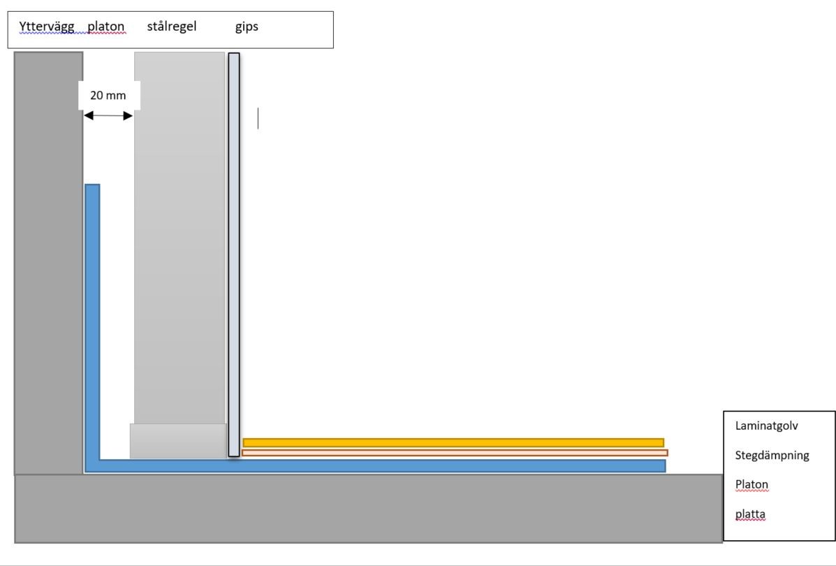 För att kunna nyttja detta lite mer finns en tanke på att lägga platon på golv och upp mot vägg för att sedan byga vidare. Kan man ställa bottenskenan till stålreglar PÅ platon och bygga likt denna skiss? Blir ju att man skruvar den genom platon ner i plattan.