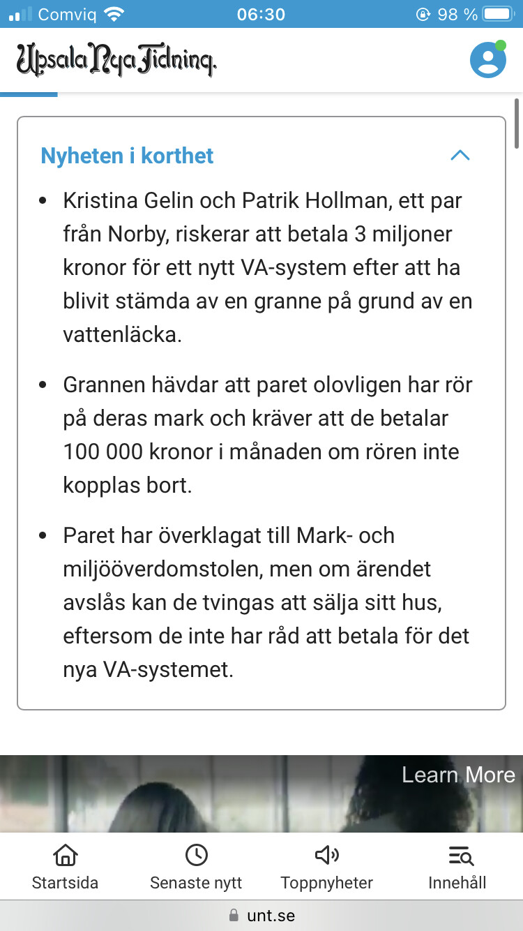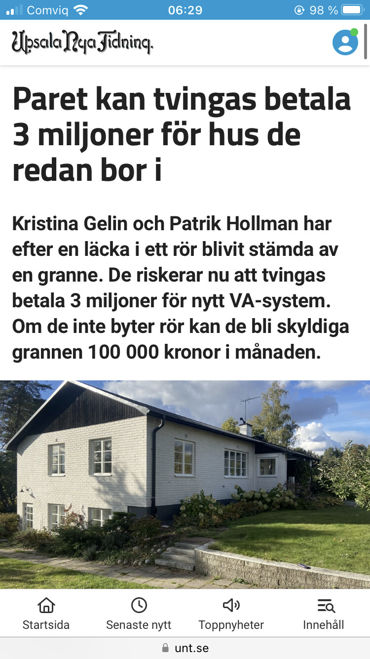 Vägproblematiken är ett stående inslag i Sverige, dessa konflikter dyker upp jämna mellanrum. I denna situation finns dock inga oklarheter, man har i dagsläget inte rätt till VA-servis över grannens tomt.AndersPS skrev: